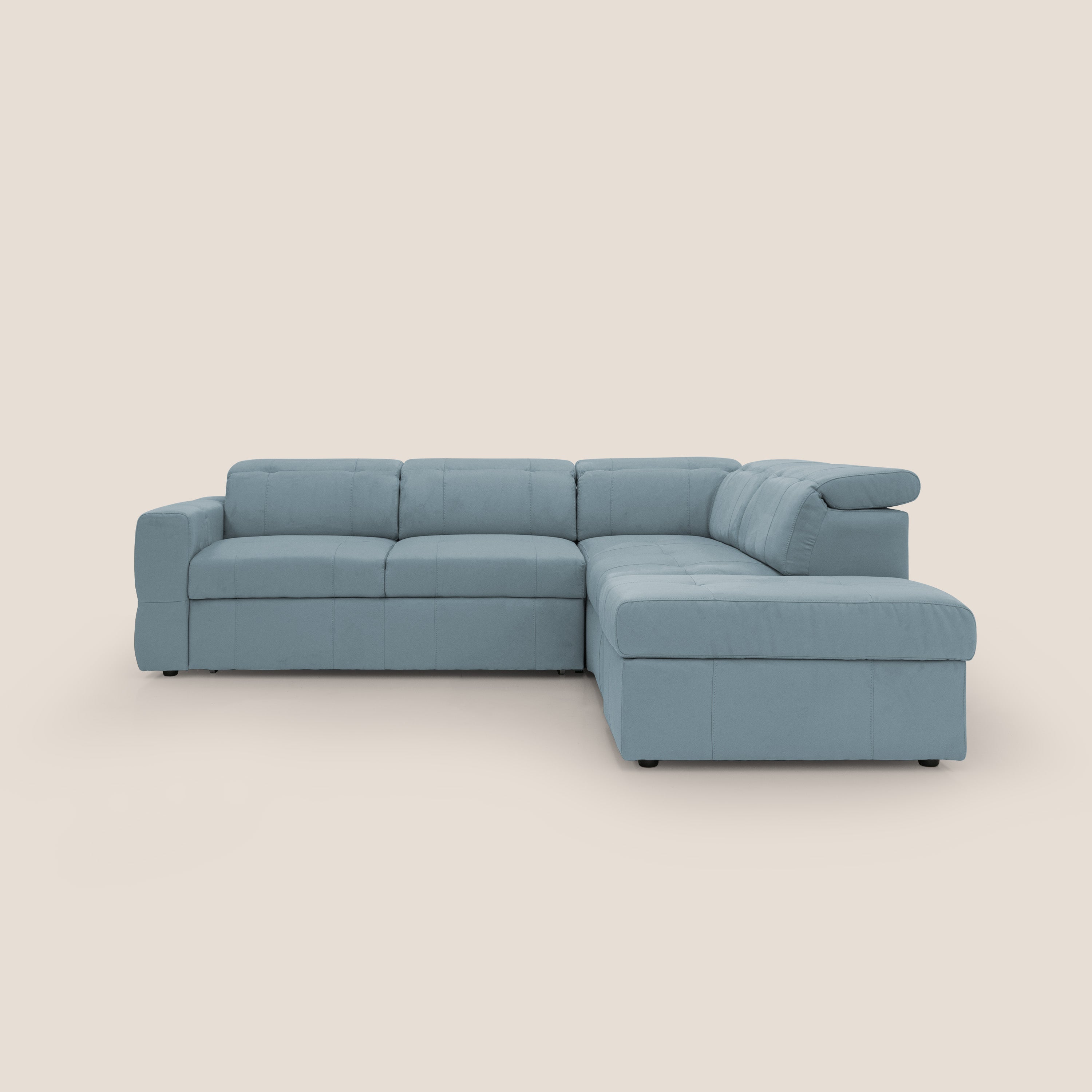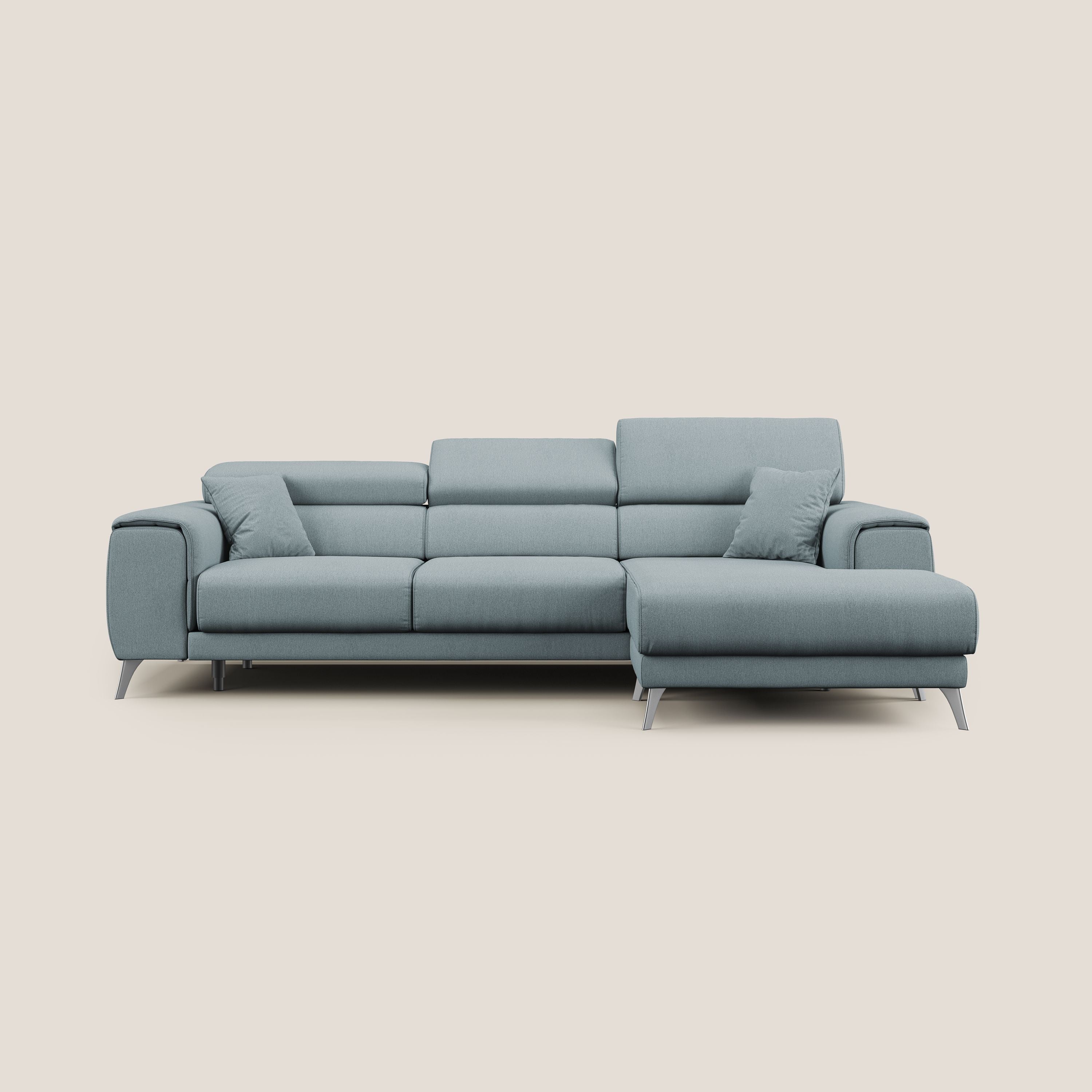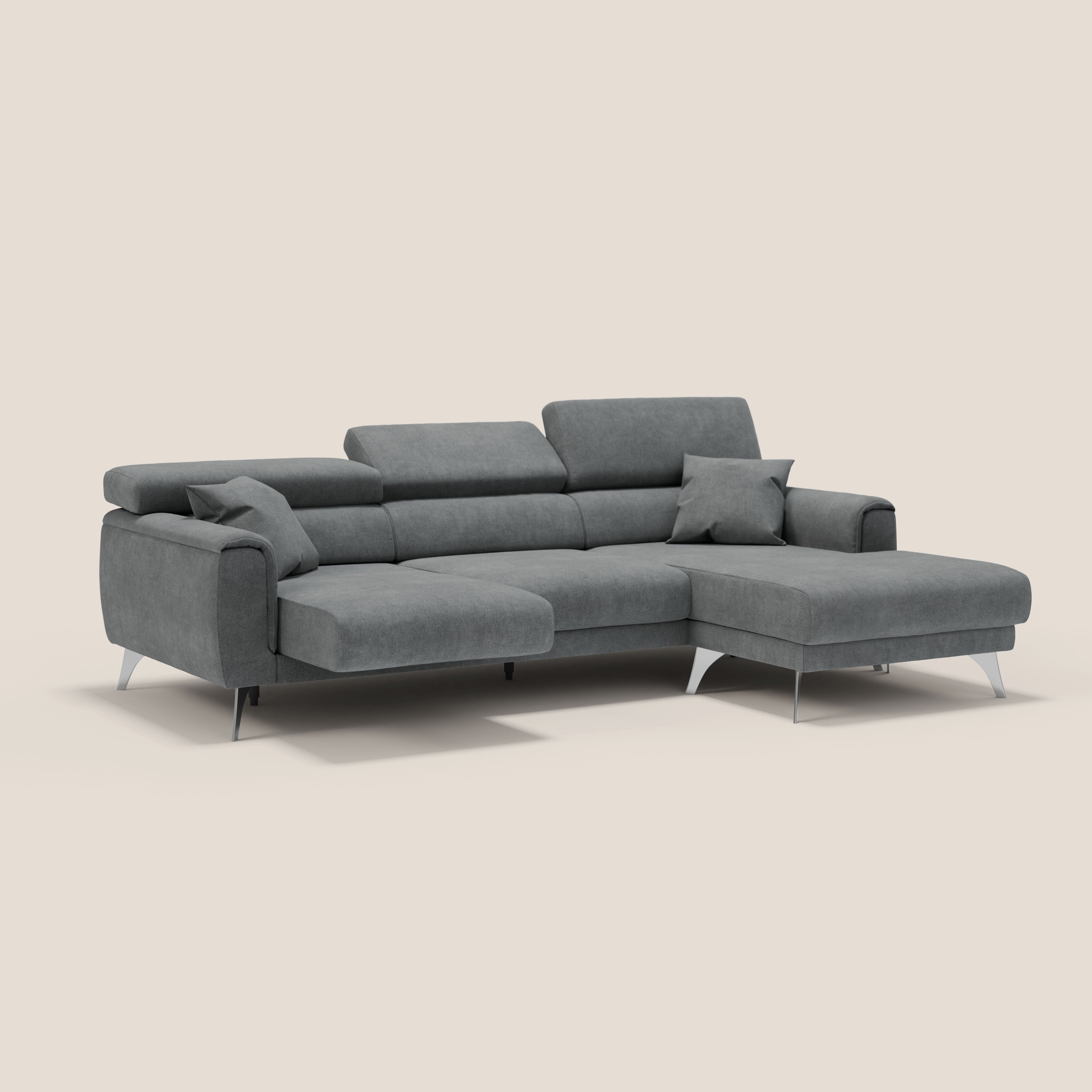 Ecksofa mit verschiebbaren Sitzen und verstellbaren Kopfstützen aus abwaschbarer Mikrofaser T11