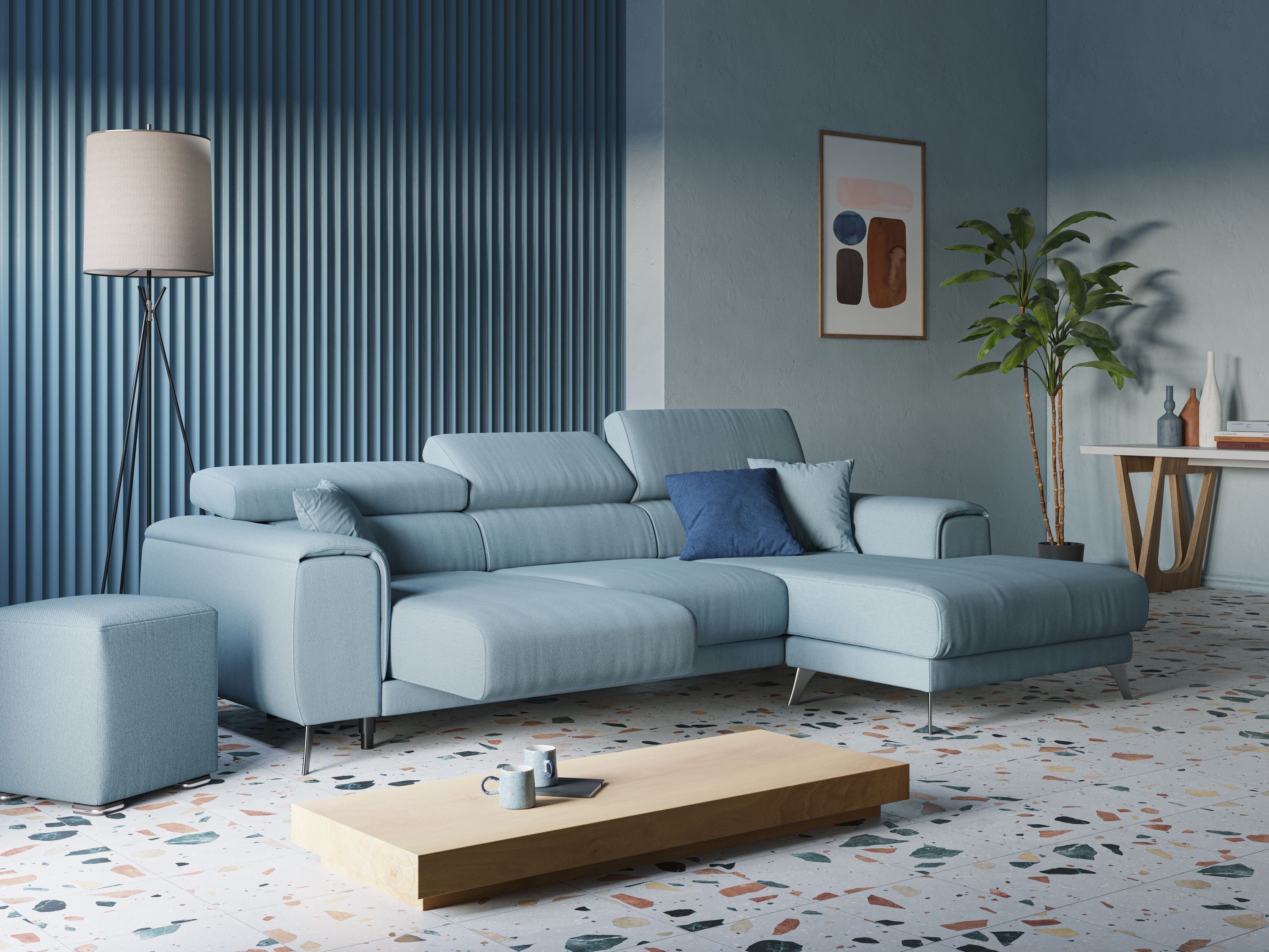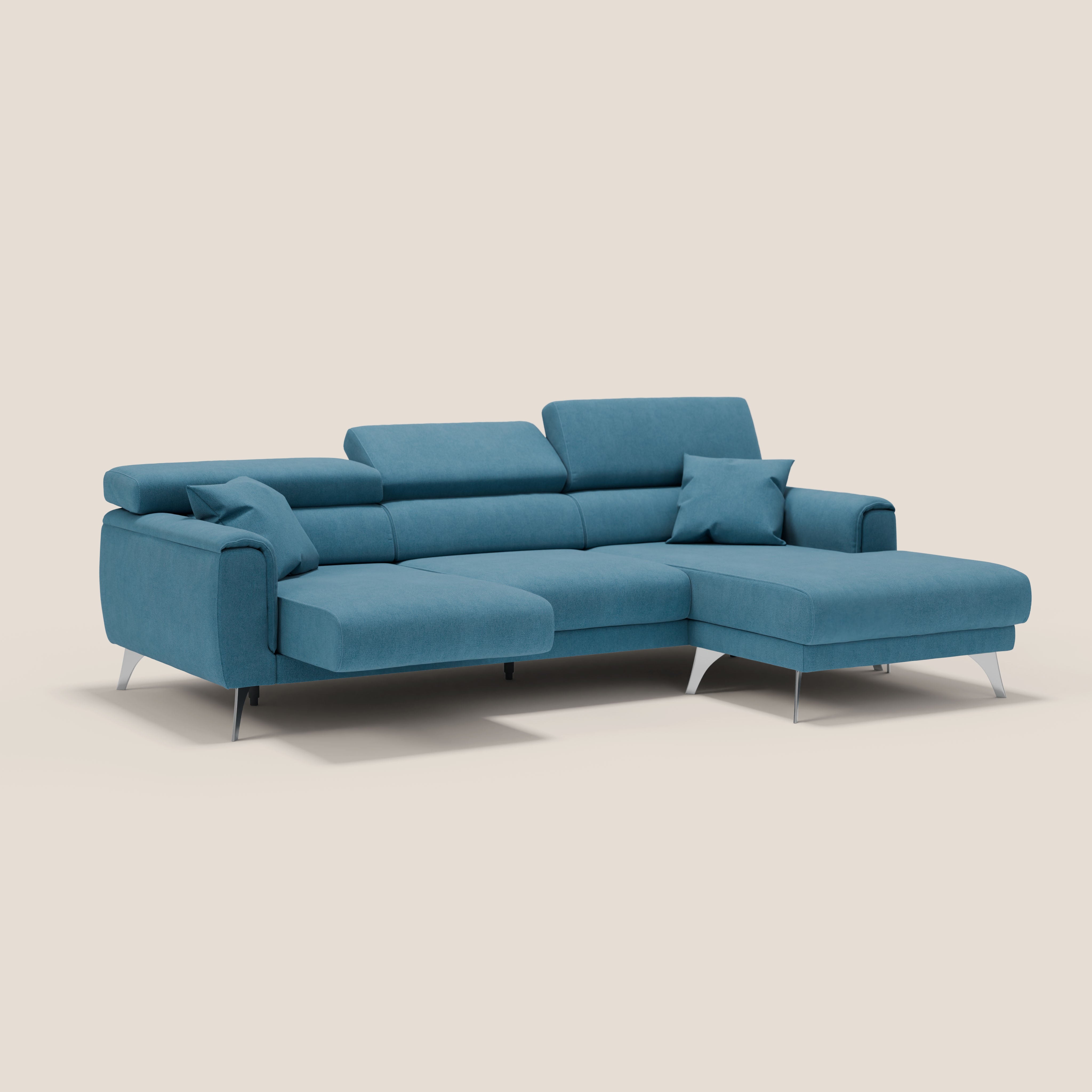Modernes Ecksofa mit verstellbaren Kopfstützen aus Kunstleder T04 blau
