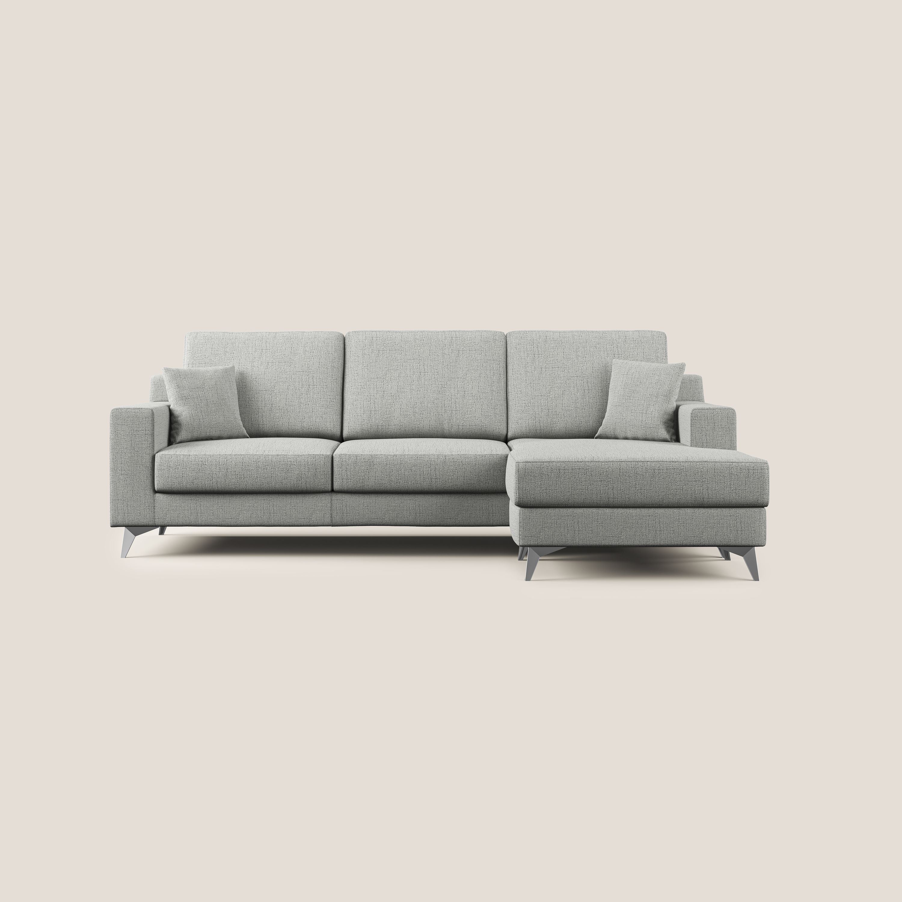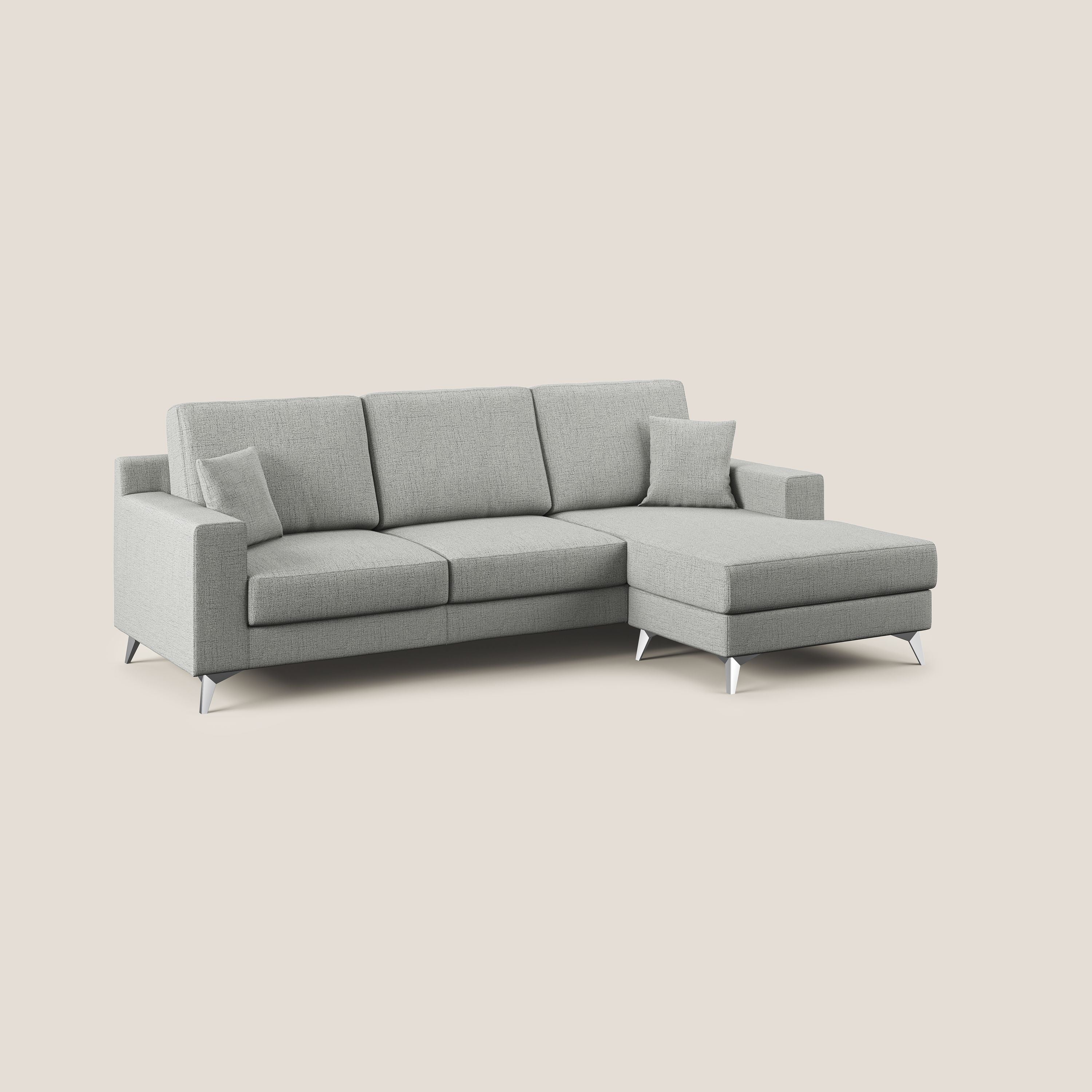 Modernes Ecksofa aus weichem, wasserfestem Stoff T03 hellgrau