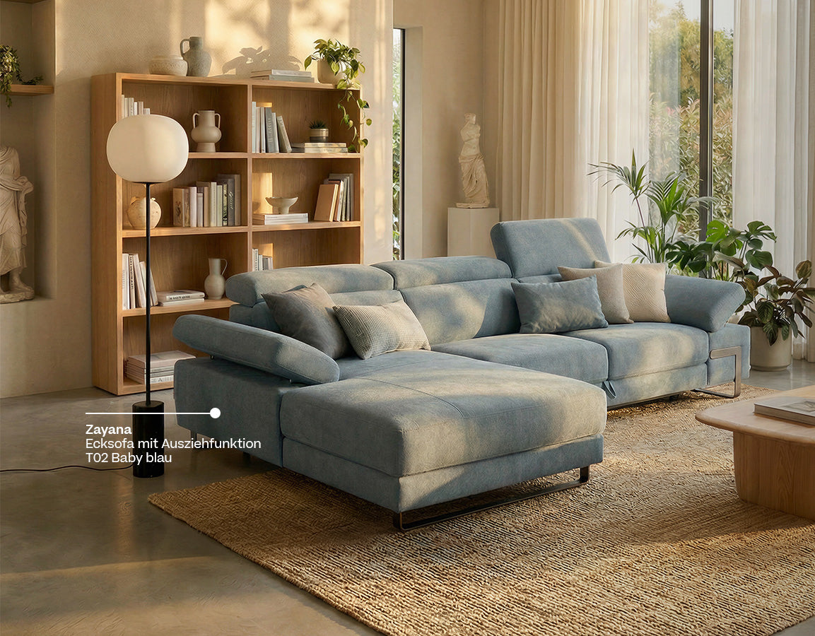 Skandinavisches platzsparendes Boxspringbett mit Lattenrost aus wasserfestem geflammtem Stoff T03 hellblau