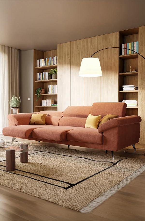 Ecksofa mit verschiebbaren Sitzen 235 cm RECHTS aus weichem, abwaschbarem Stoff T17 orange