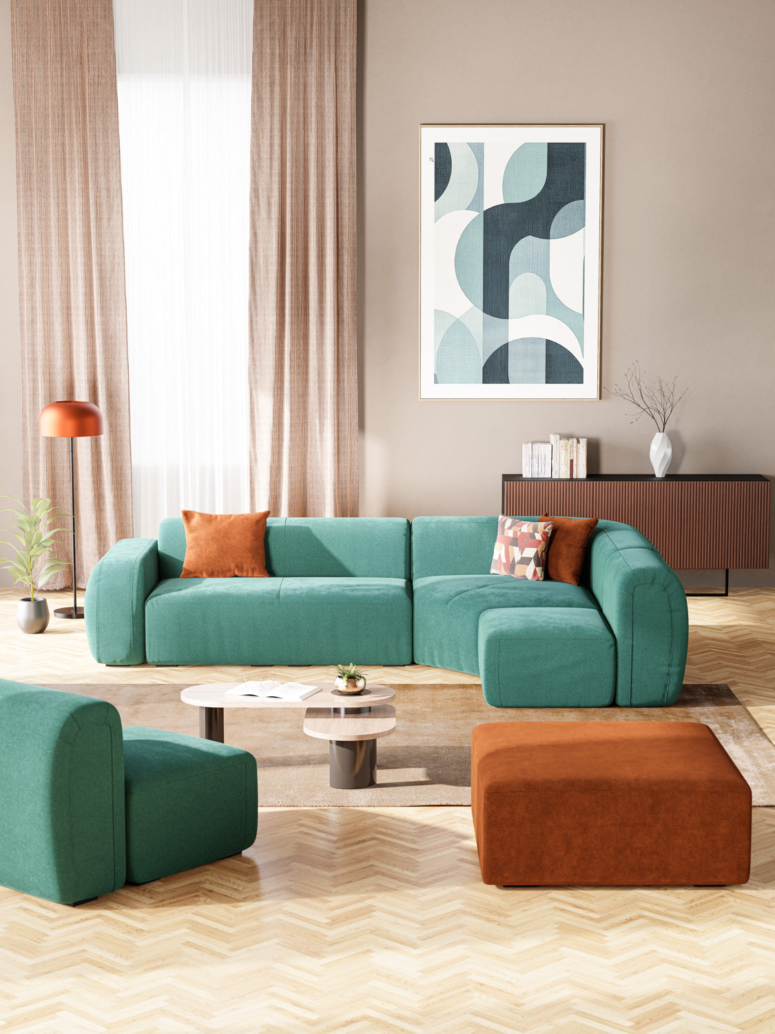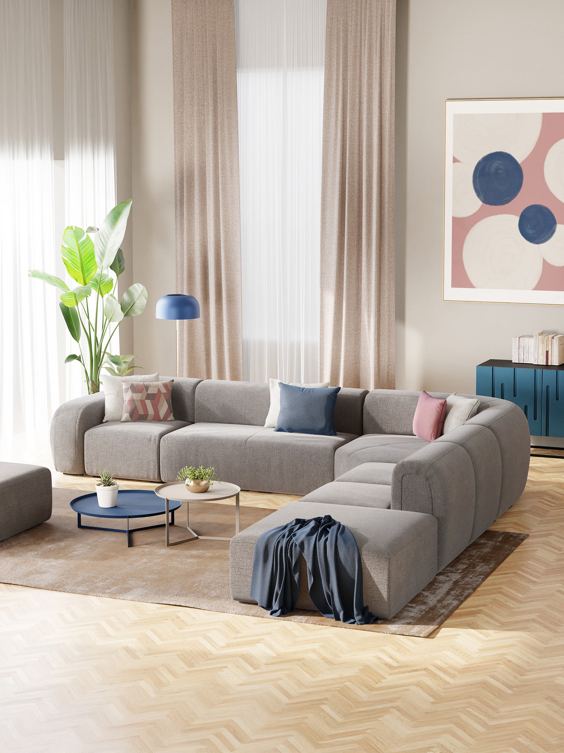 Das modulare Sofa BonBon ist nicht nur ein Möbelstück: Es ist eine Ikone des zeitgenössischen Designs, die sanfte, runde Linien, edle Materialien und eine zutiefst menschliche Seele verbindet.
