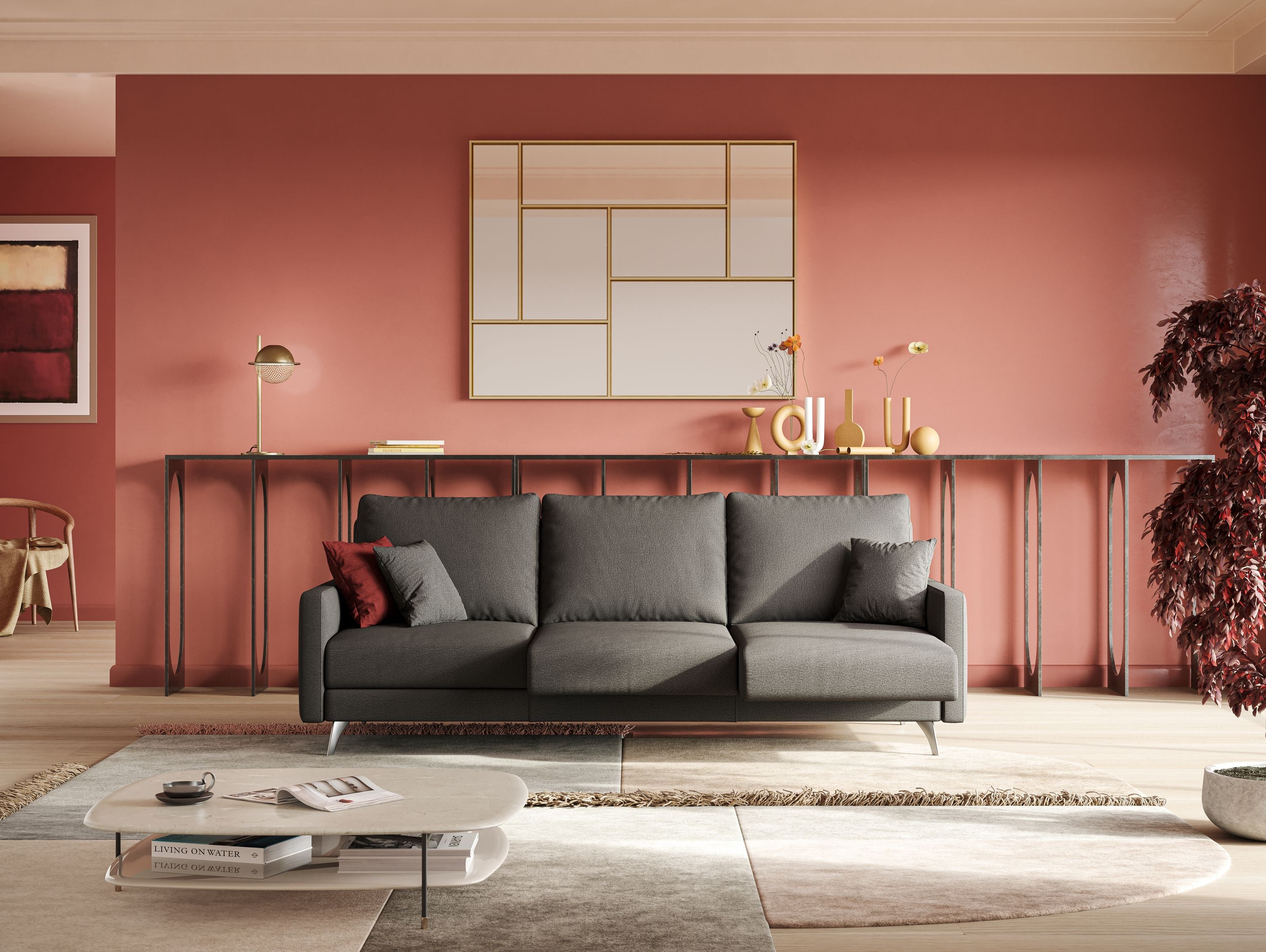 Ein graues, geradliniges Sofa ist eine elegante und moderne Wahl, perfekt für alle, die ein Möbelstück suchen, das ohne viel Aufwand zum Rest des Wohnzimmers passt. Perlgrau oder Anthrazit eignen sich sowohl für moderne als auch für klassische Einrichtungen.
