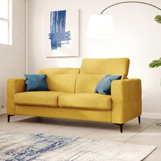 Sofa mit ausziehbarer Ottomane und verstellbare Kopfstützen aus weicher wasserfester Mikrofaser T11 gelb