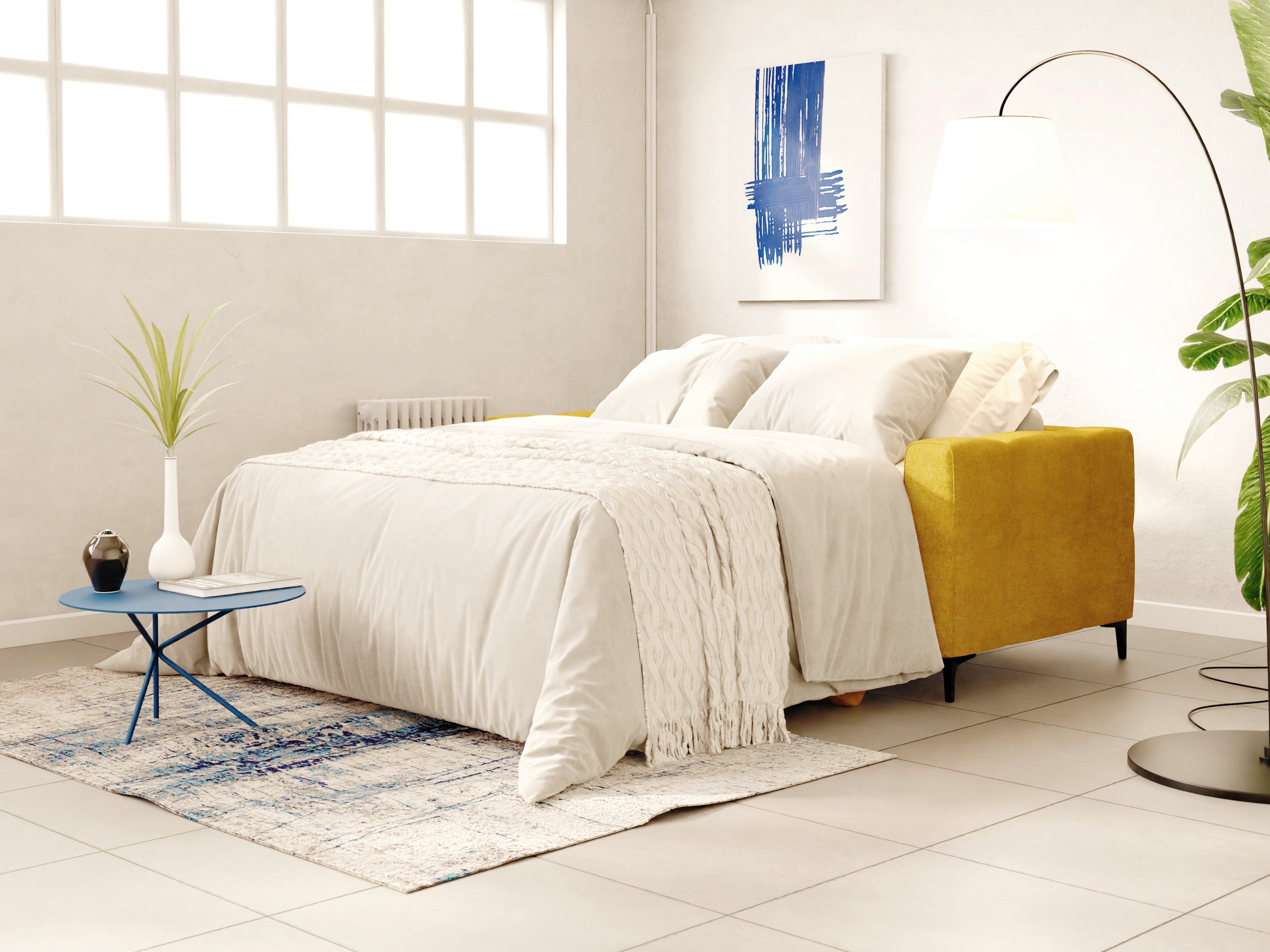 Schlafsofa aus weichem, wasserfestem Stoff T02 gelb