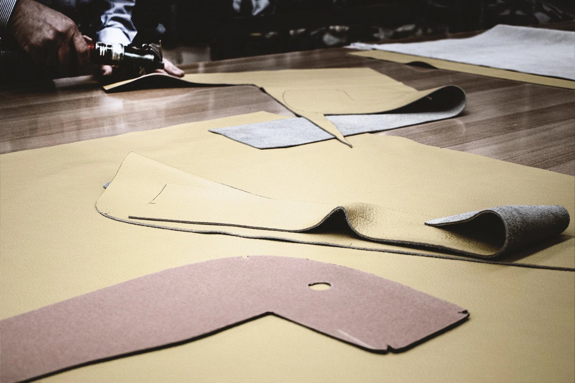 Hier, in der Zuschnittabteilung, kommen unsere fachkundigen Schneider ins Spiel: Mit Schablonen zeichnen sie die geschwungenen Linien der Sofas auf die Stoffrollen und schneiden sie dann mit einer Präzision zu, die man nur durch jahrelange Erfahrung erlangen kann.