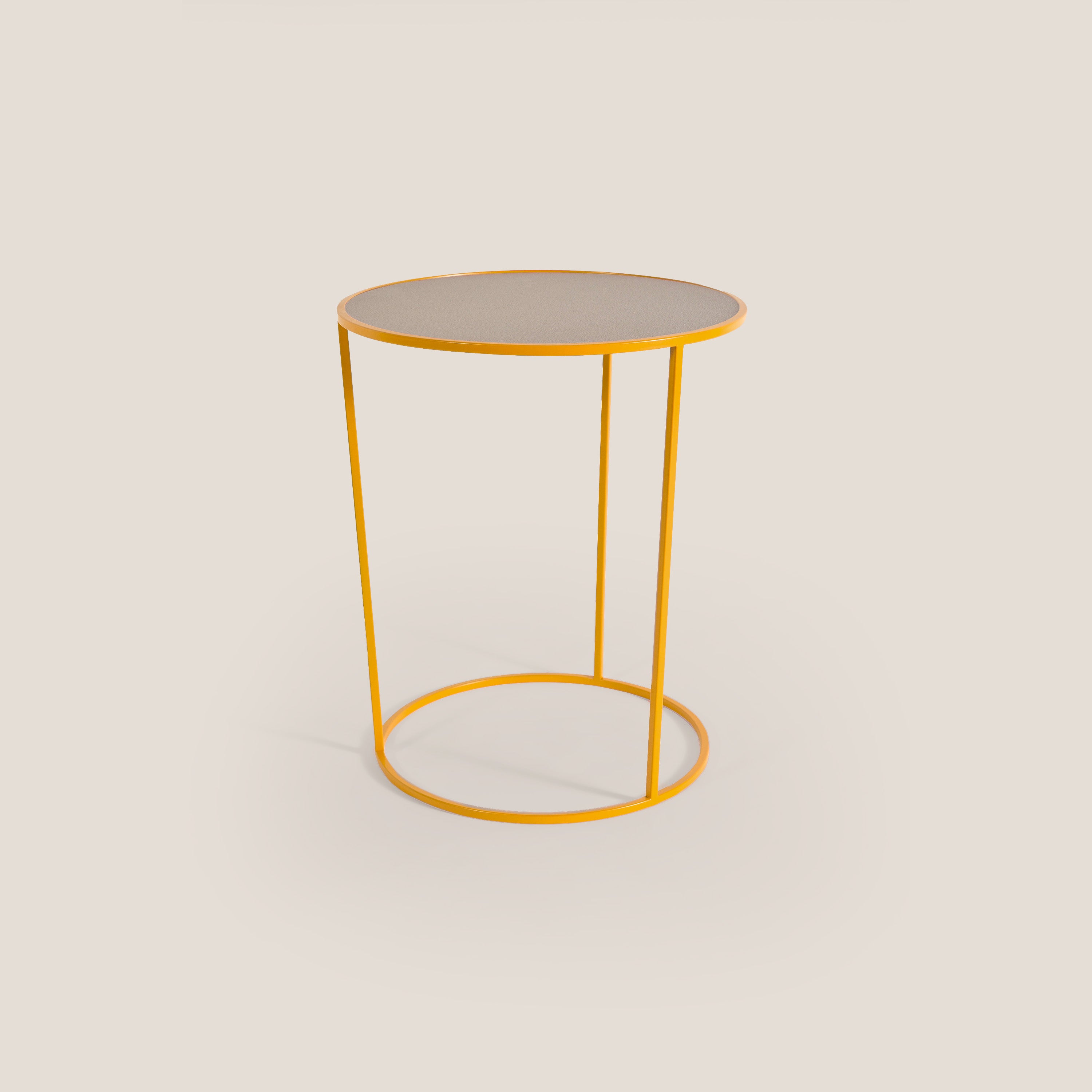 Costance ist ein moderner Couchtisch aus Stahl mit einer runden Form und einem zeitgenössischen Design. Mit seinen 1 cm dicken Stahlrohrbeinen ist er vielseitig einsetzbar und eignet sich sowohl für den Wohn- als auch für den Geschäftsbereich. Costance ist in 16 RAL-Farben sowie in zwei Metallic-Farben (Gold und Kupfer) erhältlich und eignet sich für eine Vielzahl von Umgebungen, in denen er sowohl verspielt als auch professionell wirkt. Er eignet sich nicht nur als Beistelltisch für das Wohnzimmer, sondern kann auch als Nachttisch verwendet werden.