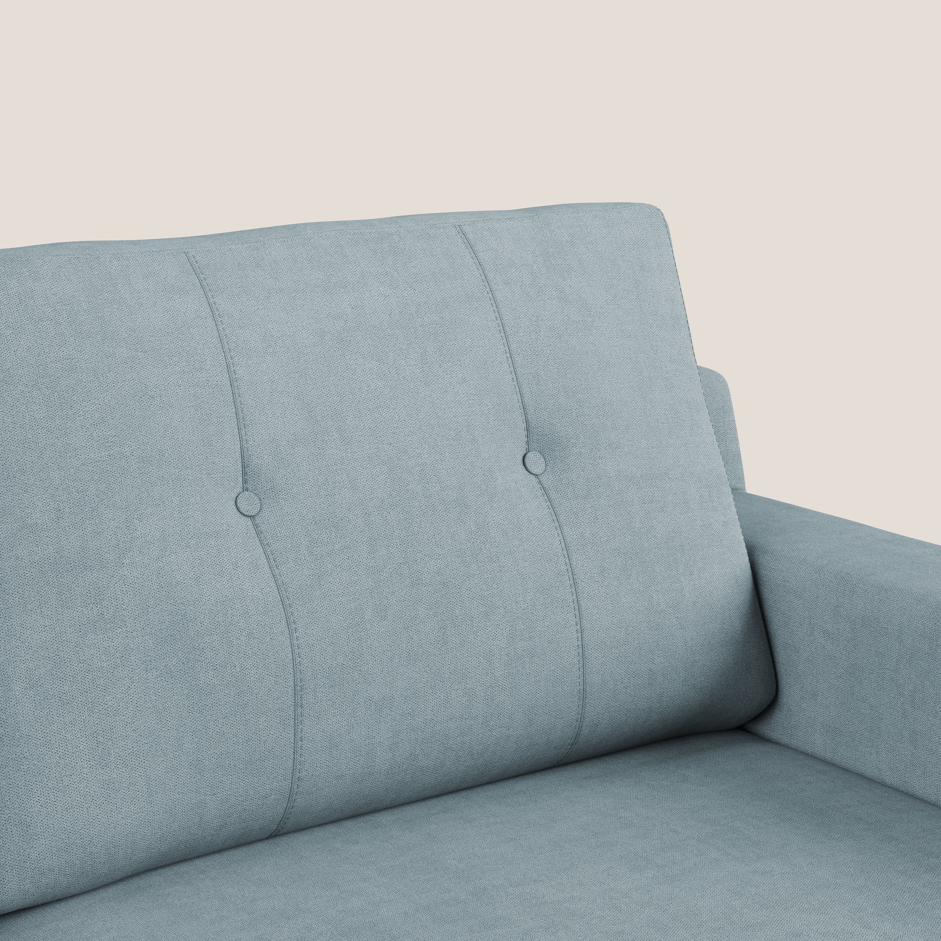 Es verfügt über eine verstellbare Halbinsel, die sich jedem Bedarf anpasst. Die Sitzflächen sind aus zweischichtigem Gummi mit unterschiedlicher Dichte, d.h. eine weiche Schicht an der Oberfläche und eine härtere auf der Innenseite, um eine höhere Tragfähigkeit zu gewährleisten. Der wasserfeste Stoffbezug macht die Reinigung dieses Sofas schnell und einfach: Es ist ein Kinderspiel, den Fleck zu entfernen, bevor er eingezogen ist. Sie werden nicht mehr darauf verzichten können!