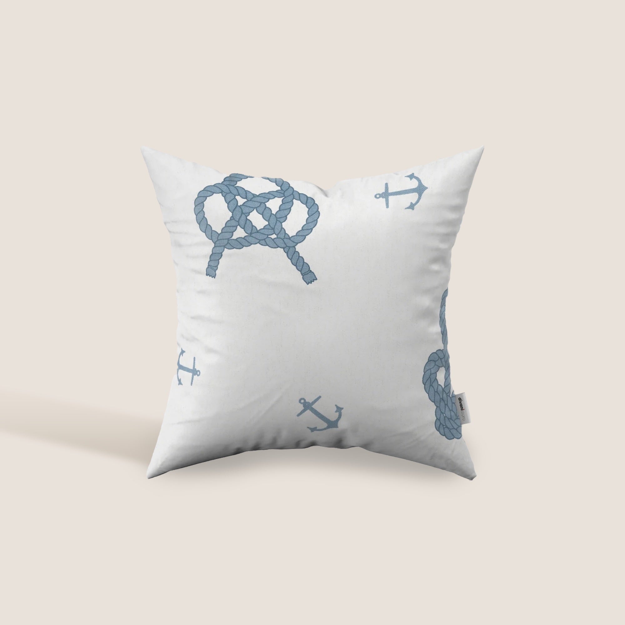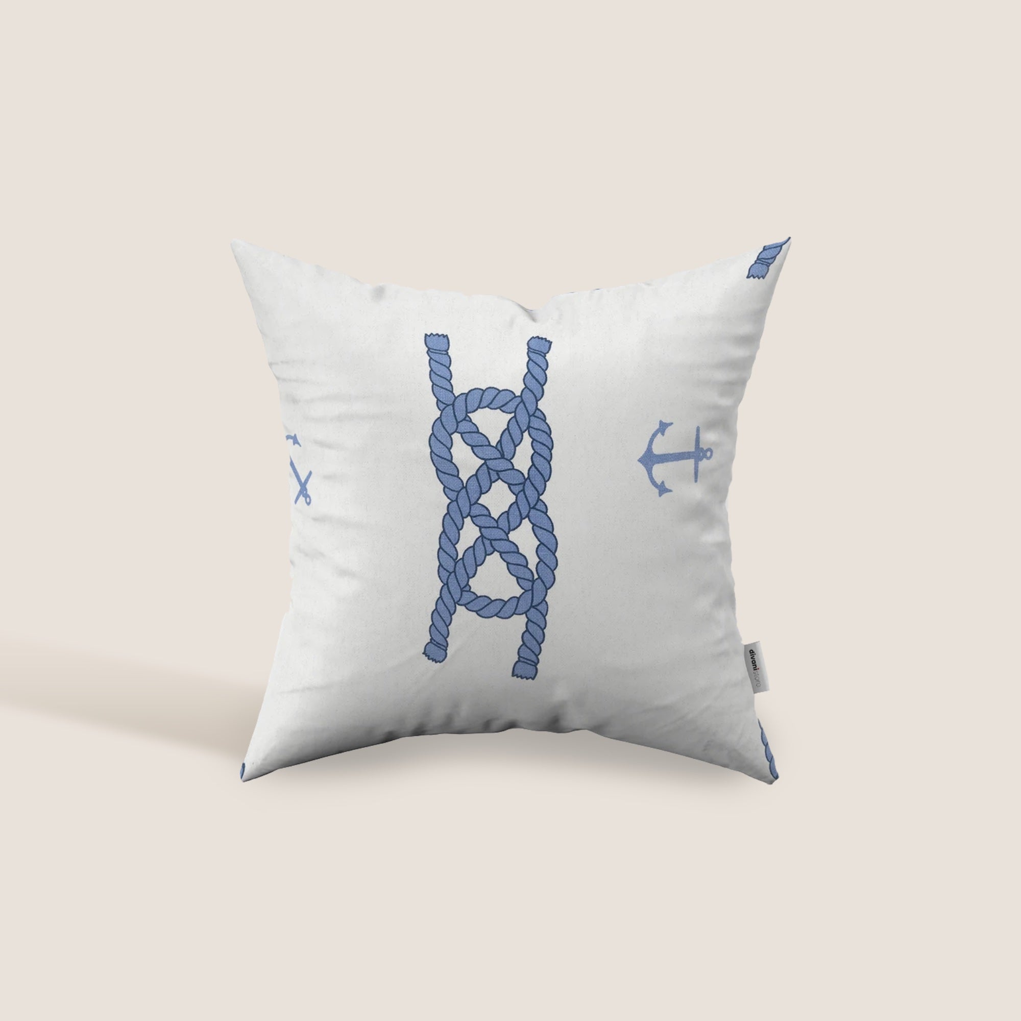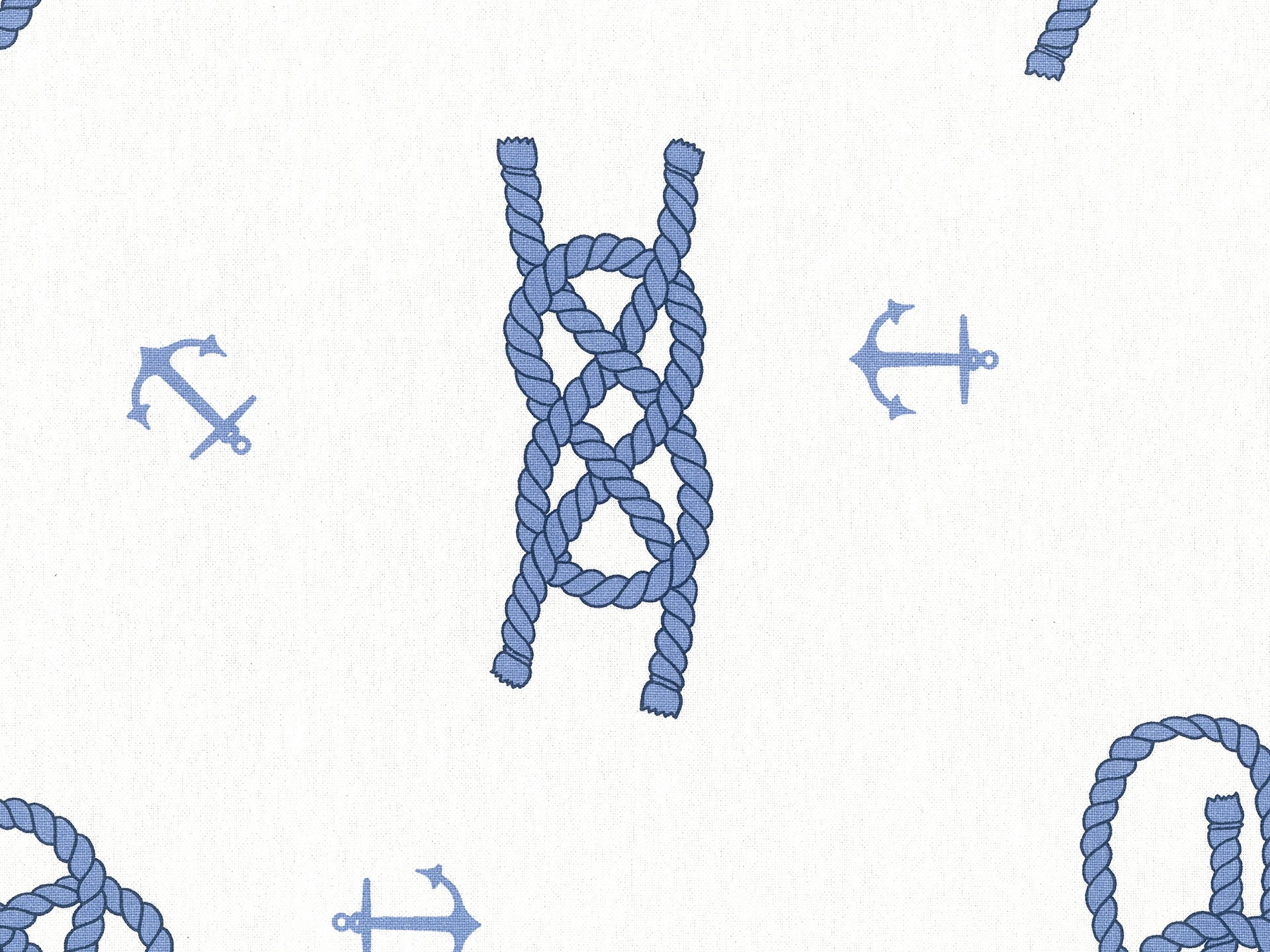 Mit einem Muster im Seemannsstil hergestellt, das den Raum mit den Farben Hellblau, Blau und Sand auflockert. Ideal für Sofas, Betten, Sessel.