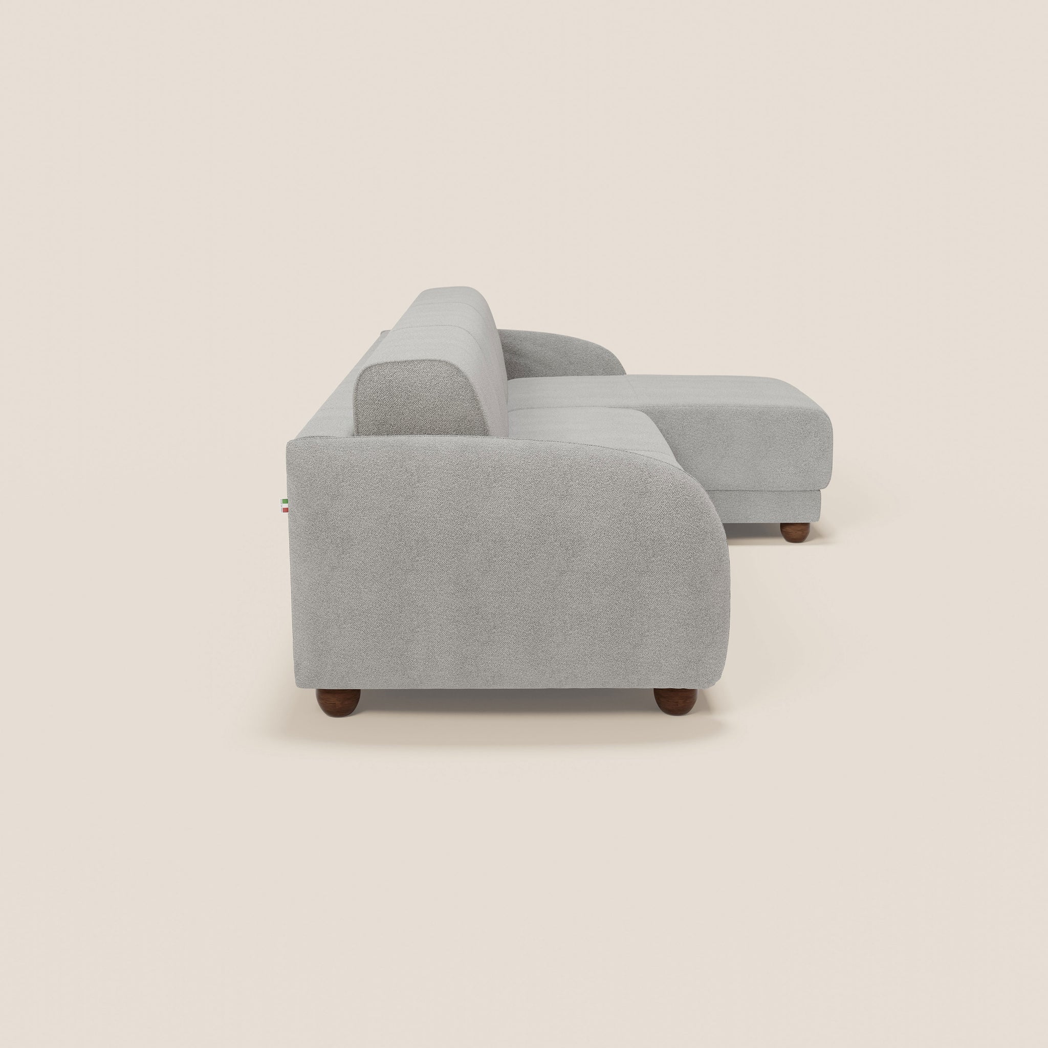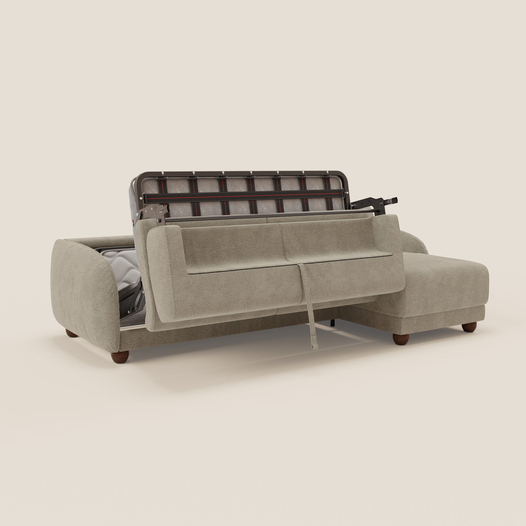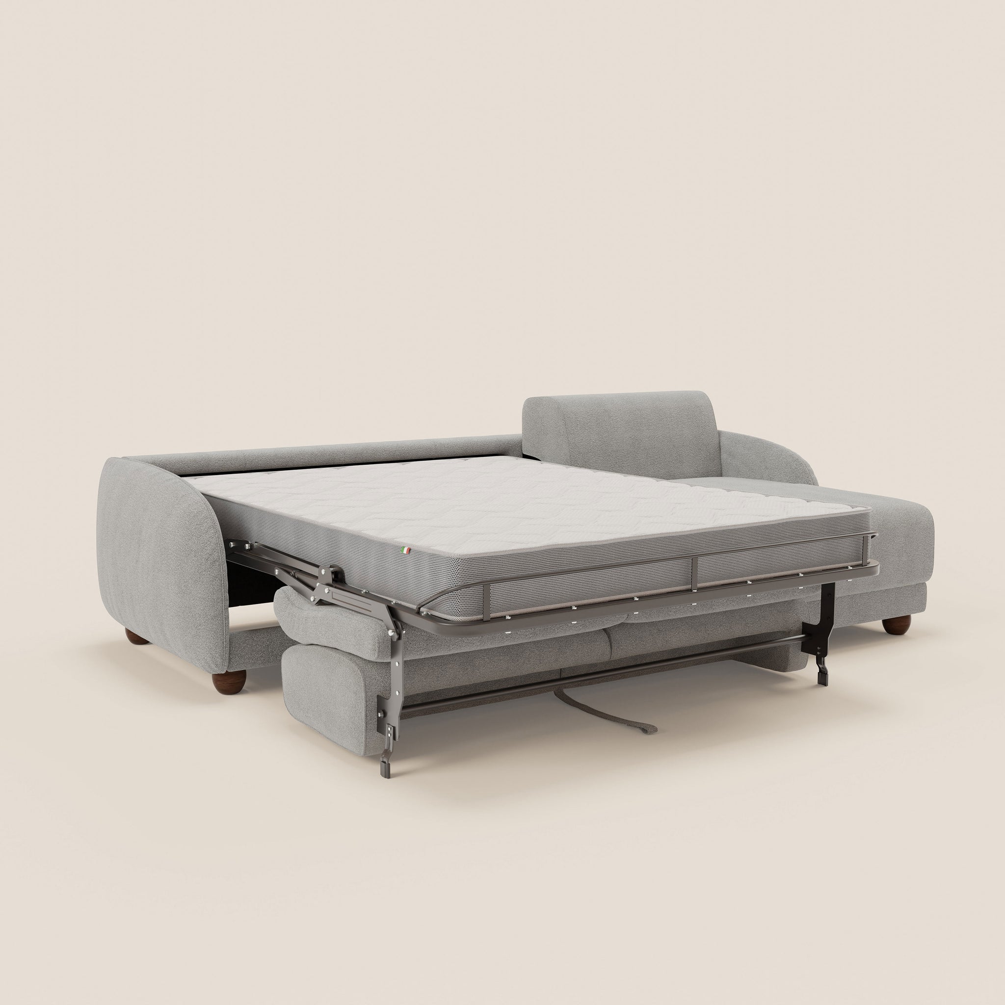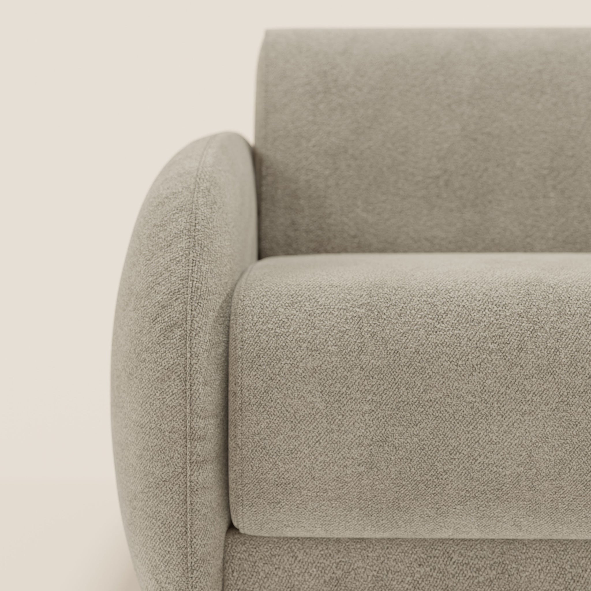 GIGLIO ecksofa vereint Japandi-Stil, Komfort und Funktionalität in einem einzigen Schlafsofa mit Stauraum. Ausgestattet mit einer 18 cm hohen Matratze und einem elektrogeschweißten Lattenrost bietet es auch im täglichen Gebrauch optimalen Schlafkomfort. Der wasserabweisende Bouclé-Bezug und die 8 cm hohen Füße aus Nussbaumholz unterstreichen die natürliche Eleganz des Modells. Die geschwungenen Armlehnen und die kompakten Linien machen es ideal für moderne und minimalistische Umgebungen.