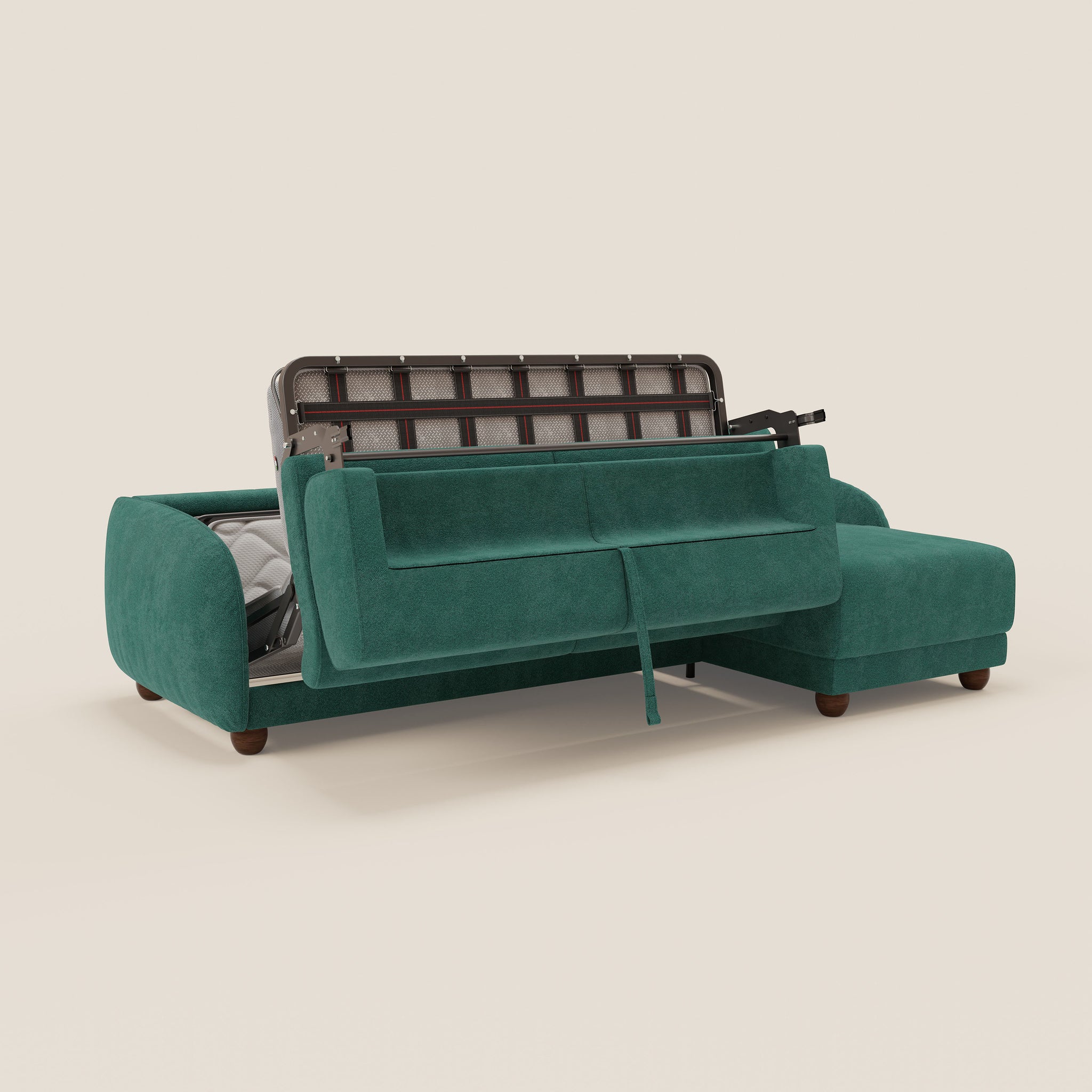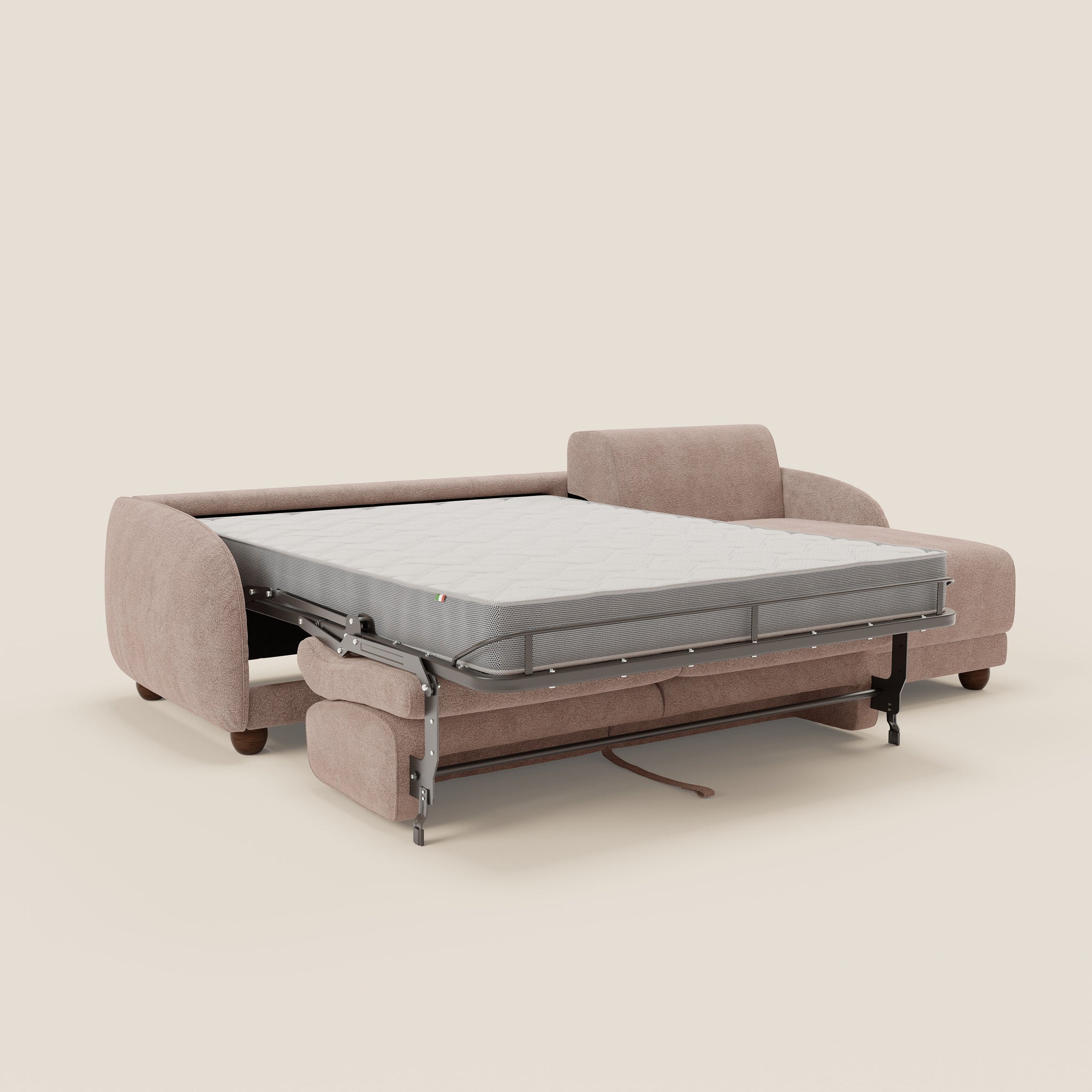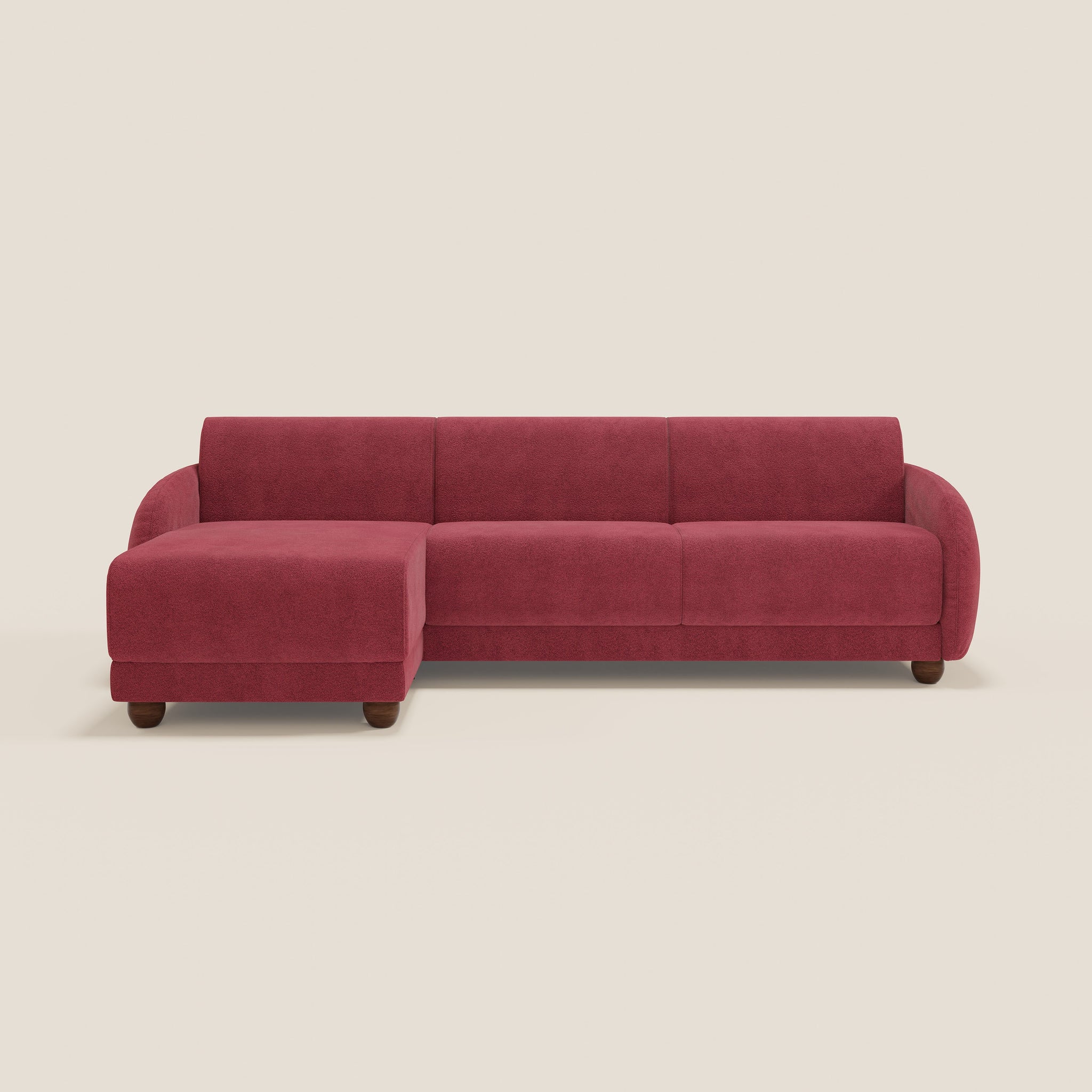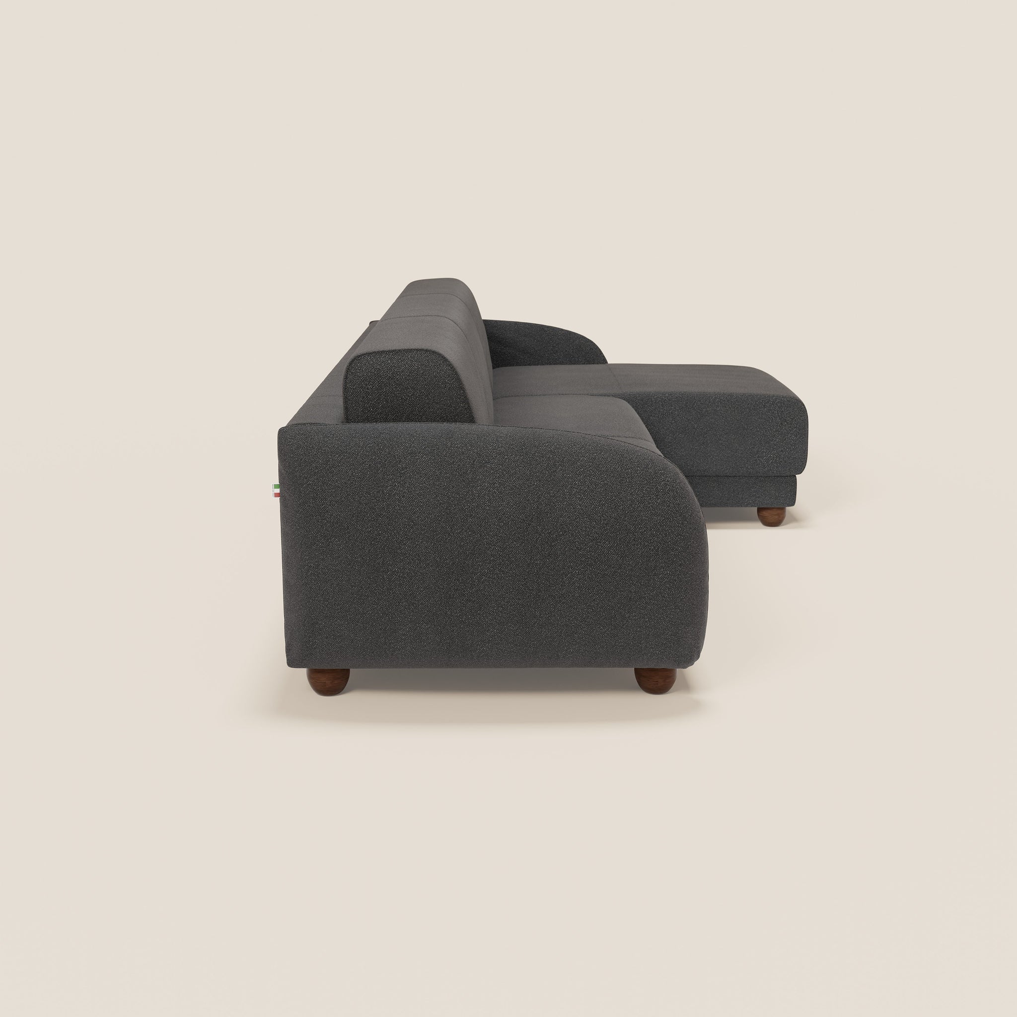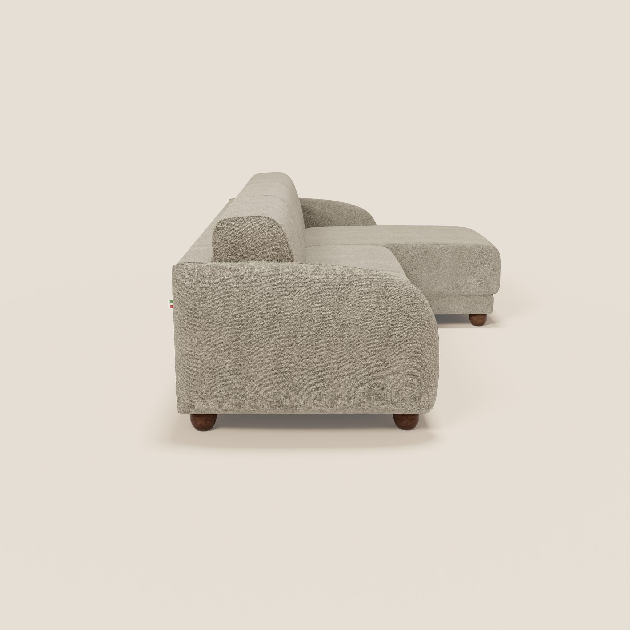 GIGLIO ecksofa vereint Japandi-Stil, Komfort und Funktionalität in einem einzigen Schlafsofa mit Stauraum. Ausgestattet mit einer 18 cm hohen Matratze und einem elektrogeschweißten Lattenrost bietet es auch im täglichen Gebrauch optimalen Schlafkomfort. Der wasserabweisende Bouclé-Bezug und die 8 cm hohen Füße aus Nussbaumholz unterstreichen die natürliche Eleganz des Modells. Die geschwungenen Armlehnen und die kompakten Linien machen es ideal für moderne und minimalistische Umgebungen.