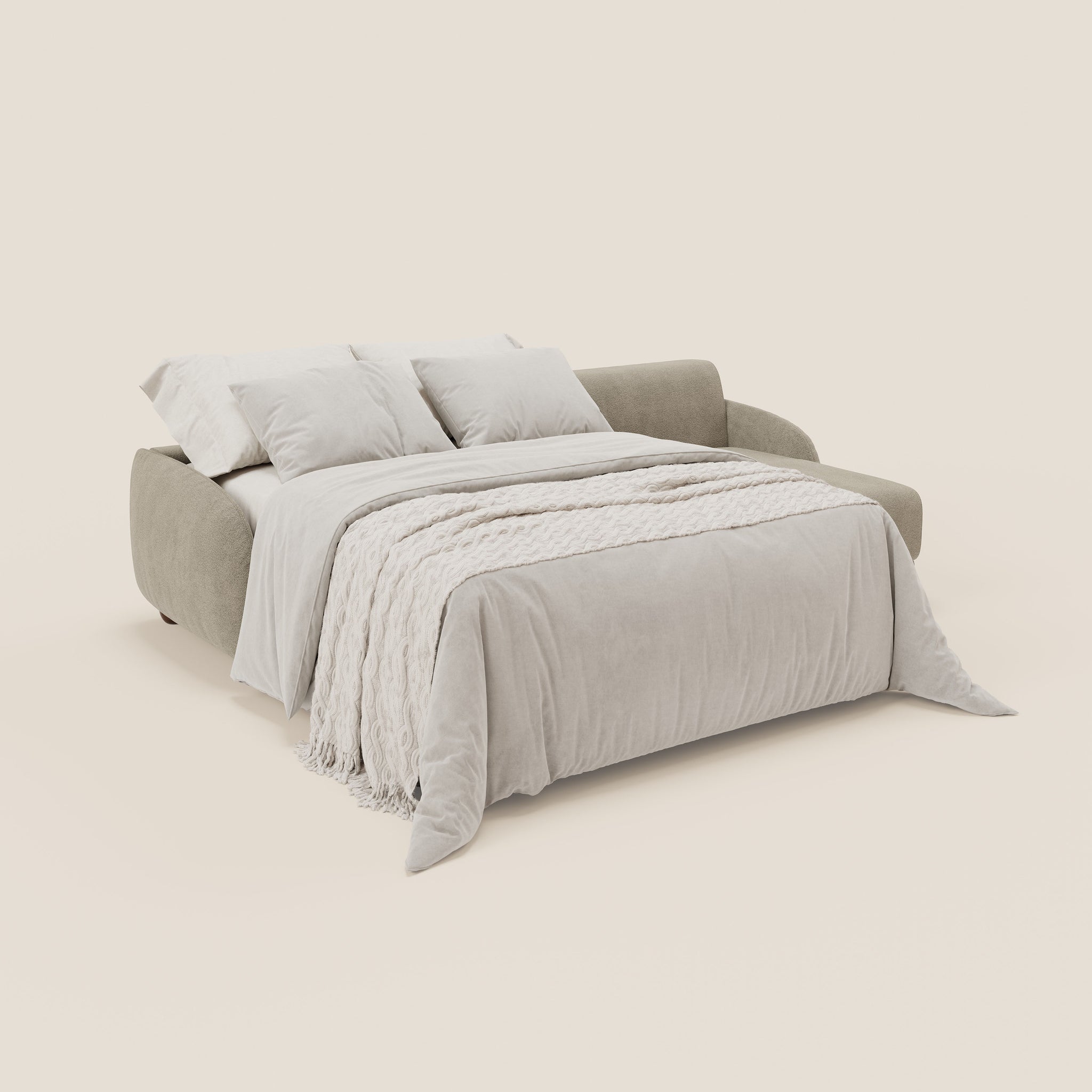 h18 cm (Standard) Mit einer Höhe von 18 cm liegt die Matratze Height Comfort + D30 mit hoher Dichte im Spitzenbereich der Bettmatratzen und gewährleistet maximalen Komfort. Sie ist hypoallergen und ergonomisch und wird für den täglichen und längeren Gebrauch des Schlafsofas empfohlen. Die Polsterung aus hypoallergenen Thermofasern trägt zur Temperaturregulierung während des Schlafs bei und sorgt für eine maximale Atmungsaktivität der Matratze. Der umlaufende Bezug ist mit einem atmungsaktiven Gewebeband versehen, das den Luftaustausch innerhalb der Struktur optimiert und die Bildung von Feuchtigkeit und damit von Schimmel verhindert. Die Unterseite besteht aus dickem, haltbarem, griffigem und reißfestem Thermofilz.