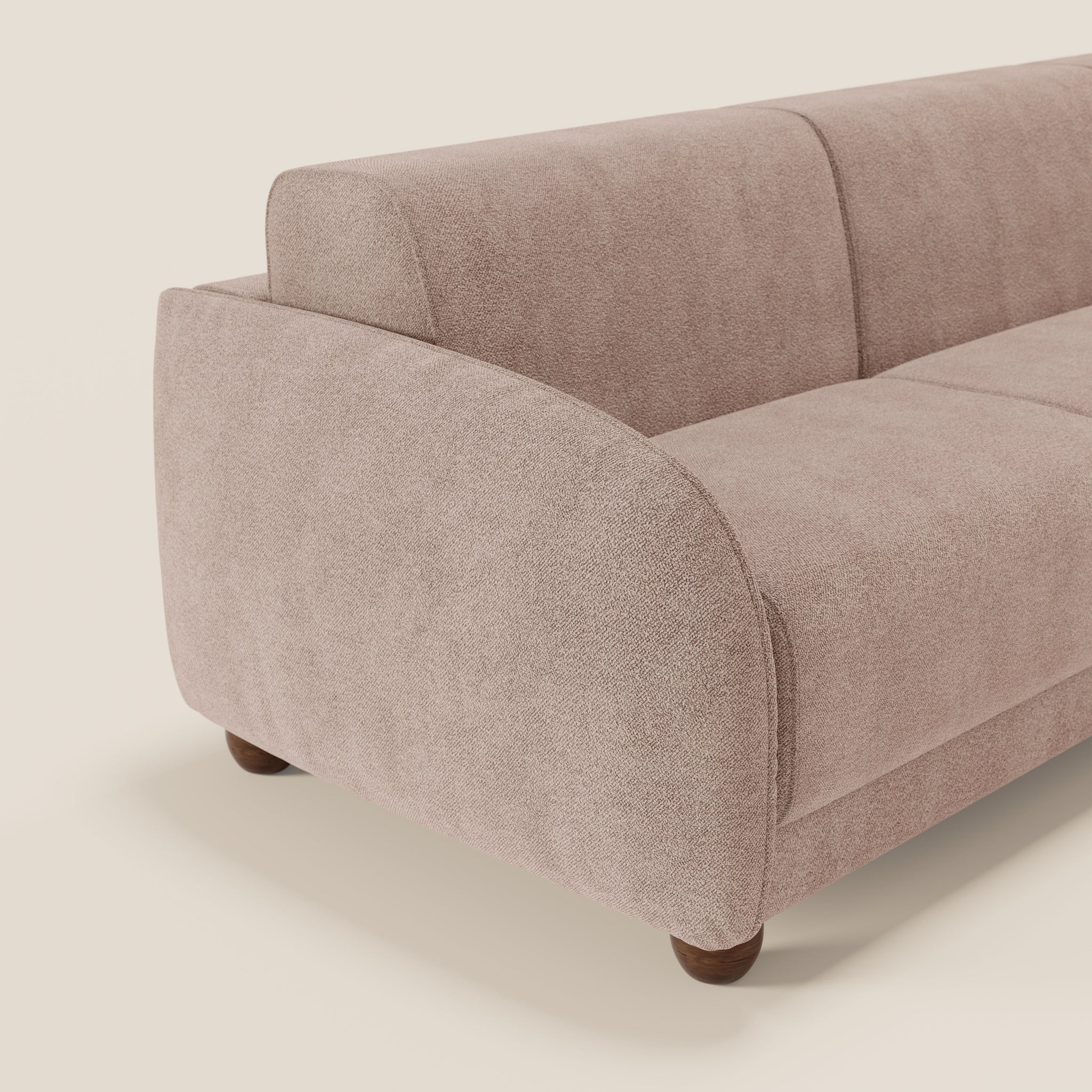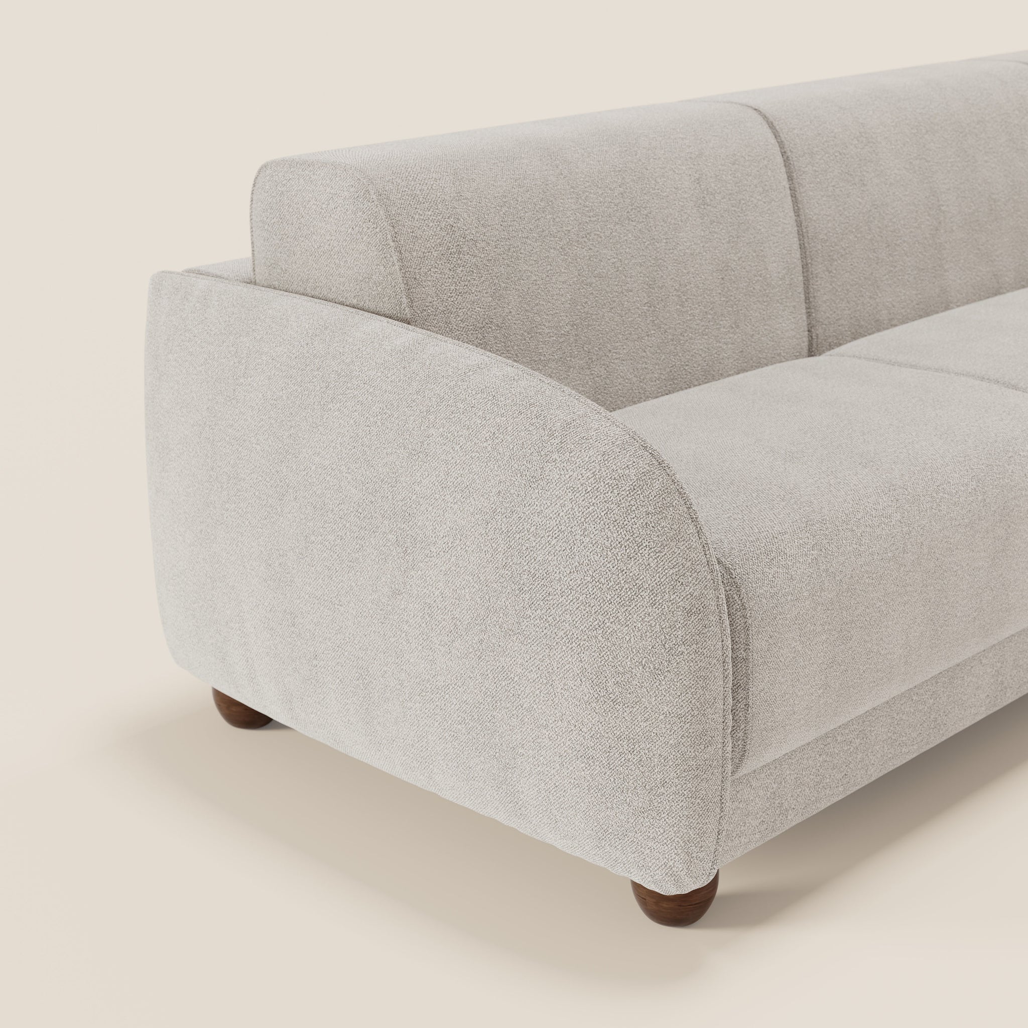 Der Stoff mit Bouclé-Effekt verleiht dem Design eine warme, natürliche Note. Die wasserabweisende Behandlung macht das Sofa pflegeleicht und widerstandsfähig gegen den täglichen Gebrauch. -