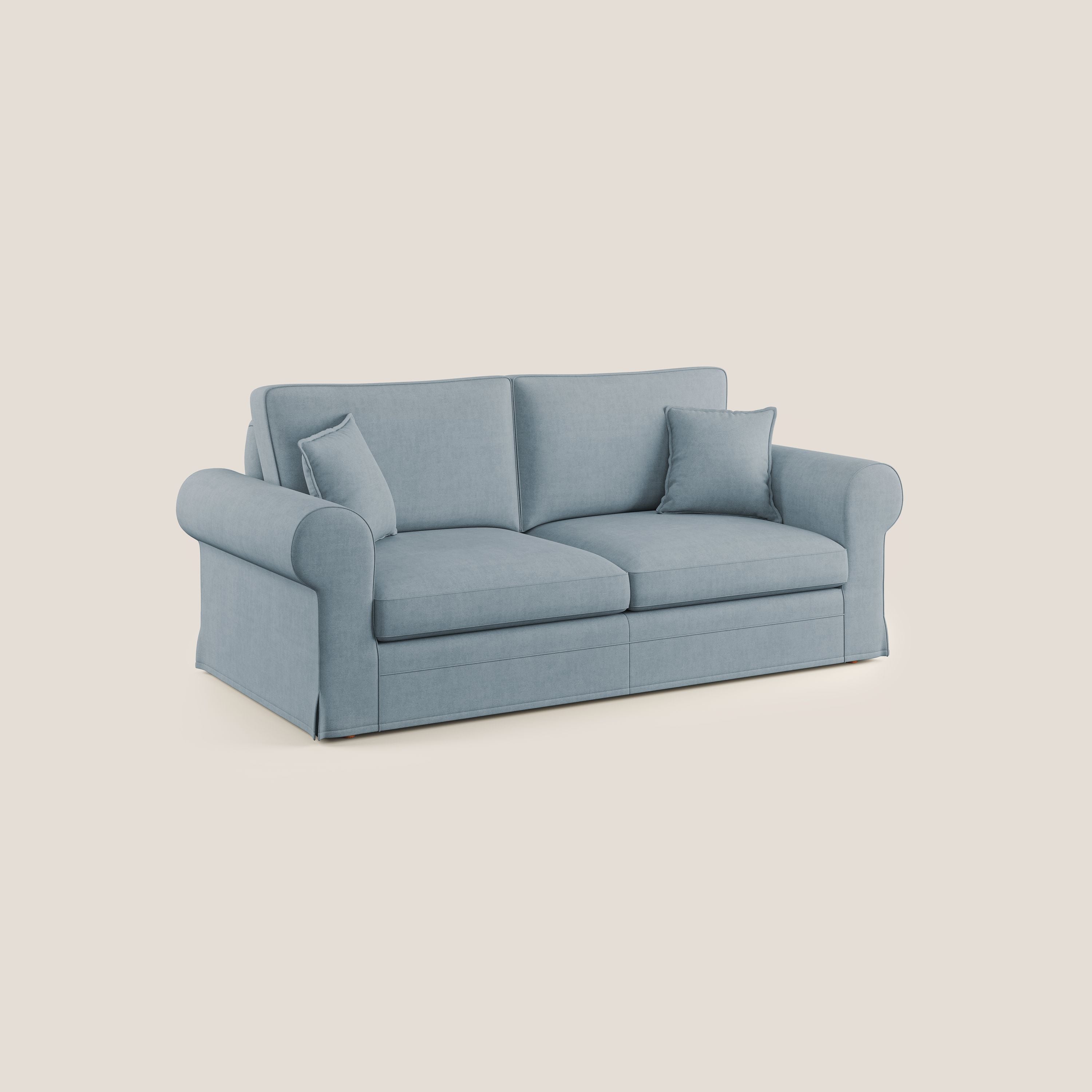Ein 3- und 2-Sitzer-Sofa mit klassischer Linie, vollständig mit Gänsedaunen gepolstert und mit wasserfestem Stoff mit wasserabweisender Behandlung bezogen. Das Sofa LADY ist mit Holzfüßen ausgestattet, hat komplett abnehmbare Bezüge und ist in verschiedenen Farben und Größen erhältlich, um allen Platzanforderungen gerecht zu werden. Sofa 100% Made in Italy.