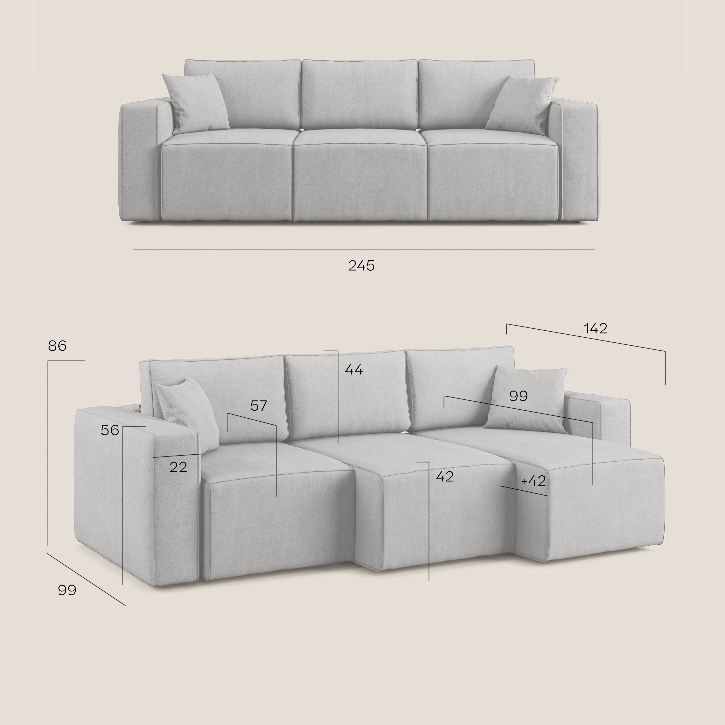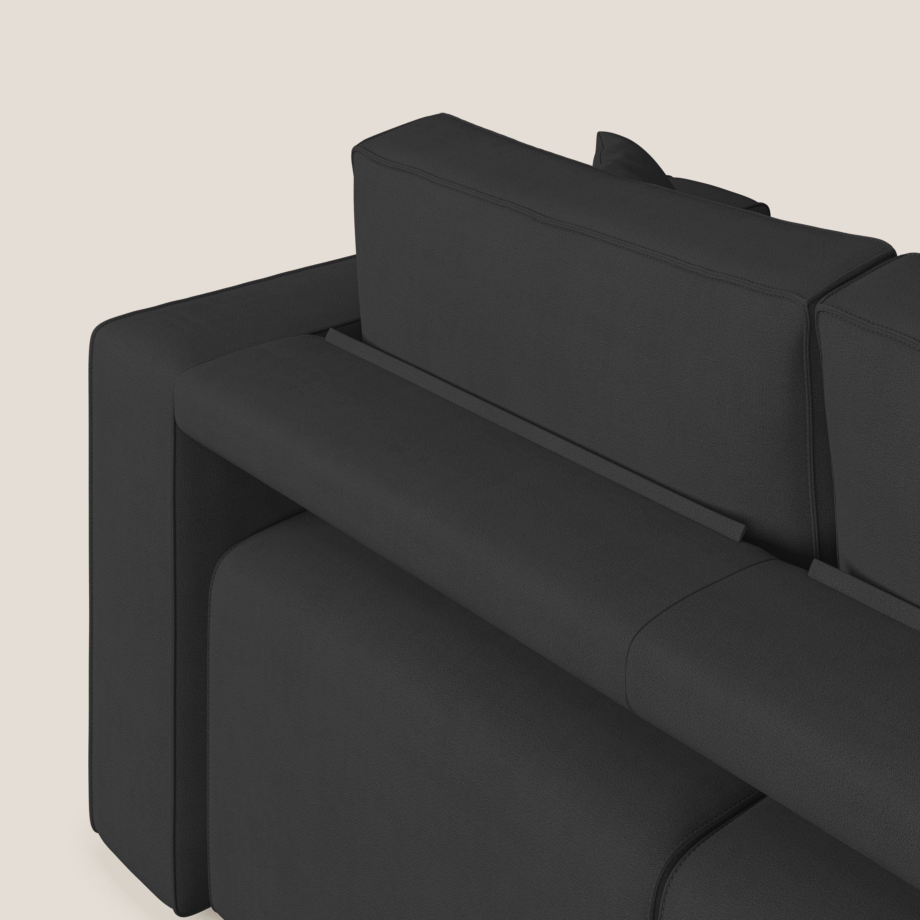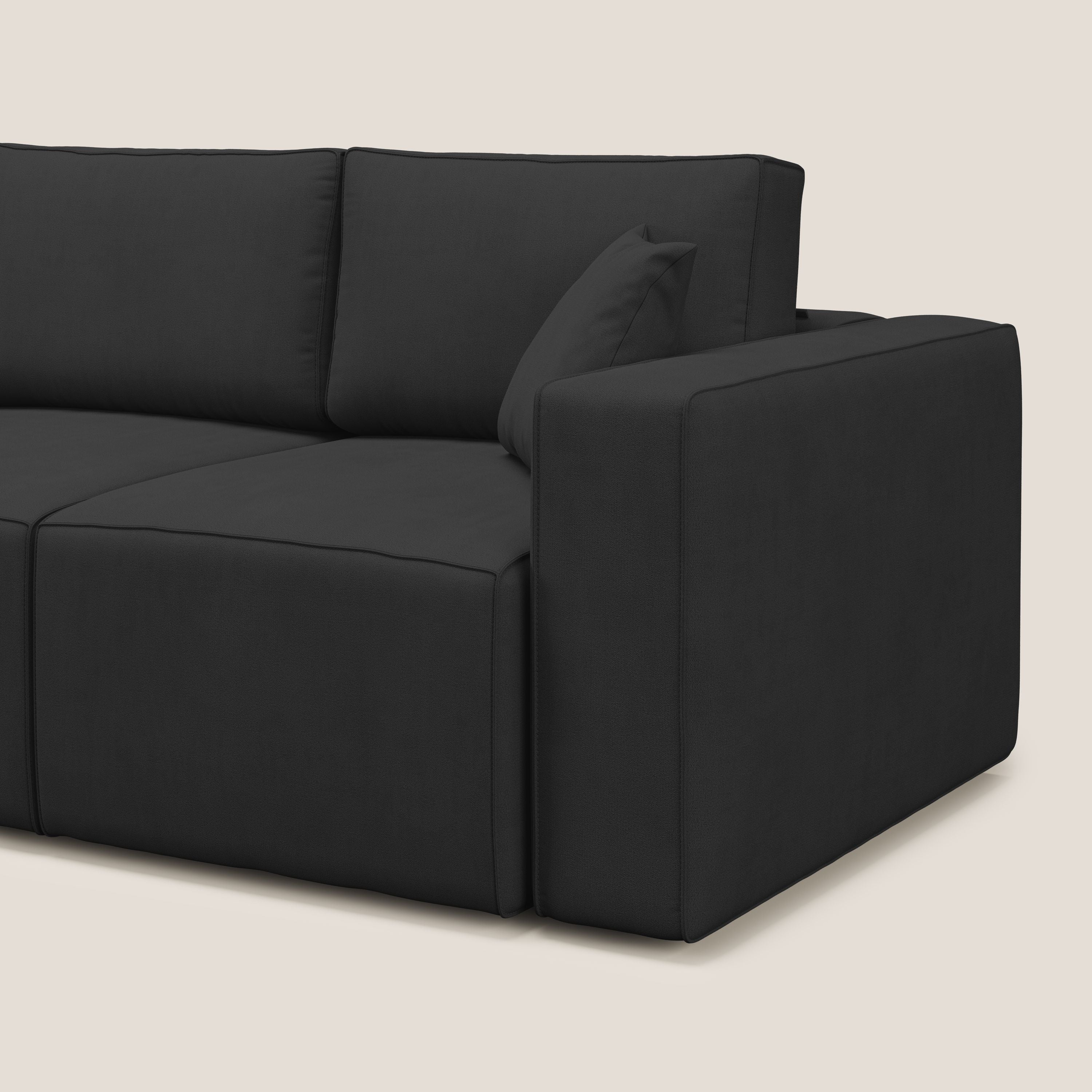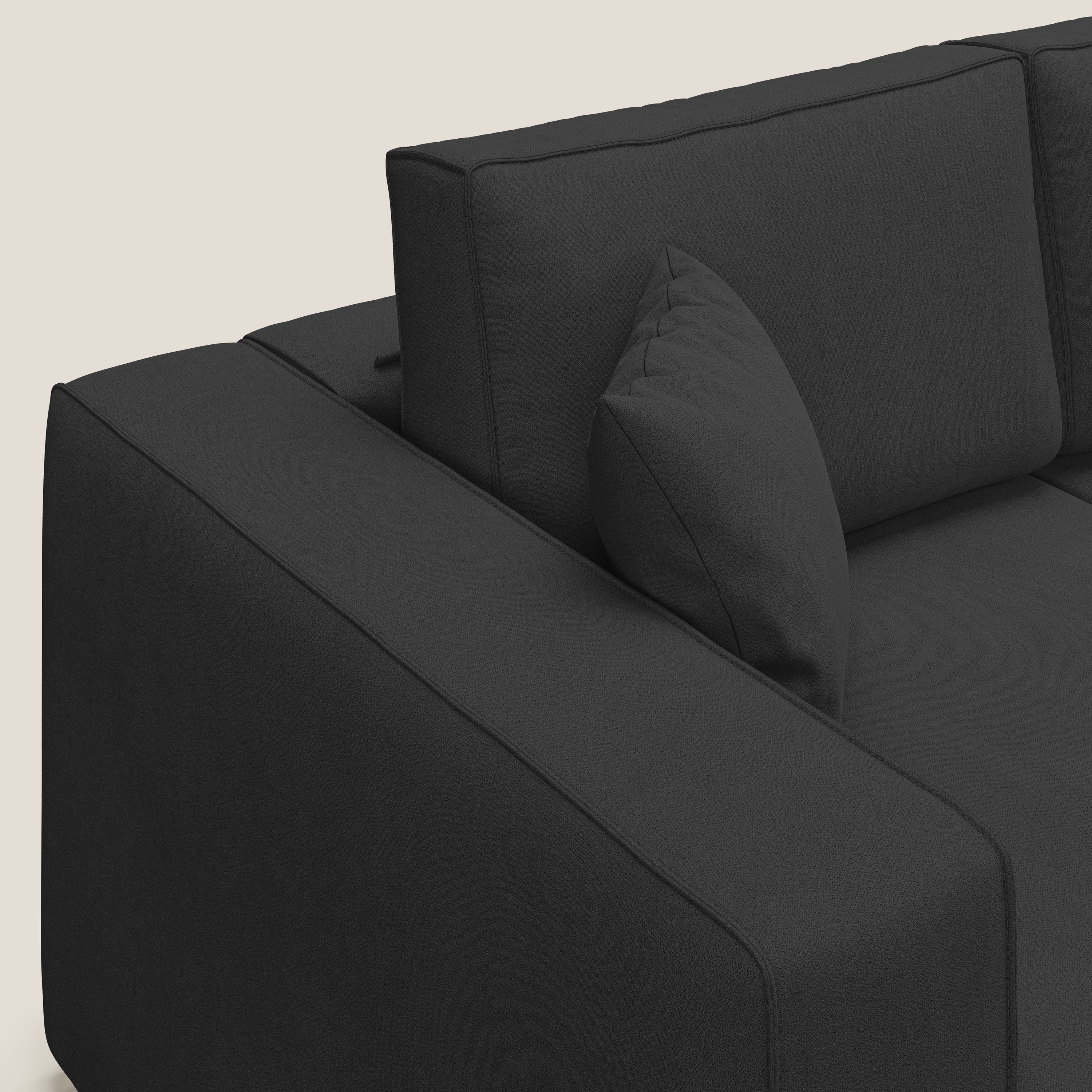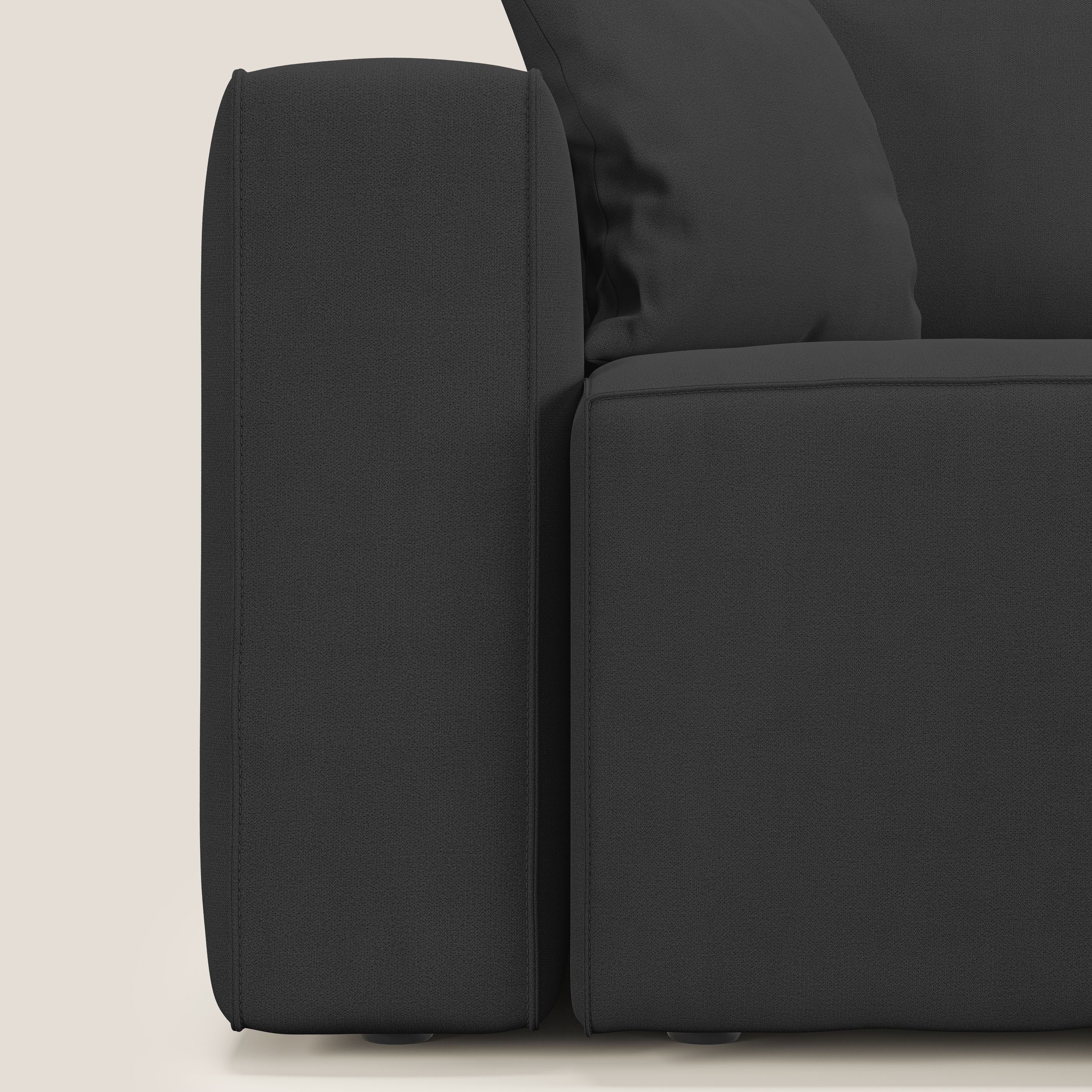 Vollständig abnehmbarer Bezug aus schmutzabweisendem Stoff mit wasserabweisender Behandlung. Die raffinierten Details in der Endverarbeitung verleihen dem Modell einen raffinierten Stil, der in seiner Art einzigartig ist, mit einer tadellosen Verarbeitung beim Nähen, bei der Auswahl der verwendeten Rohstoffe und in der Endphase der Polsterung jedes einzelnen Produkts.