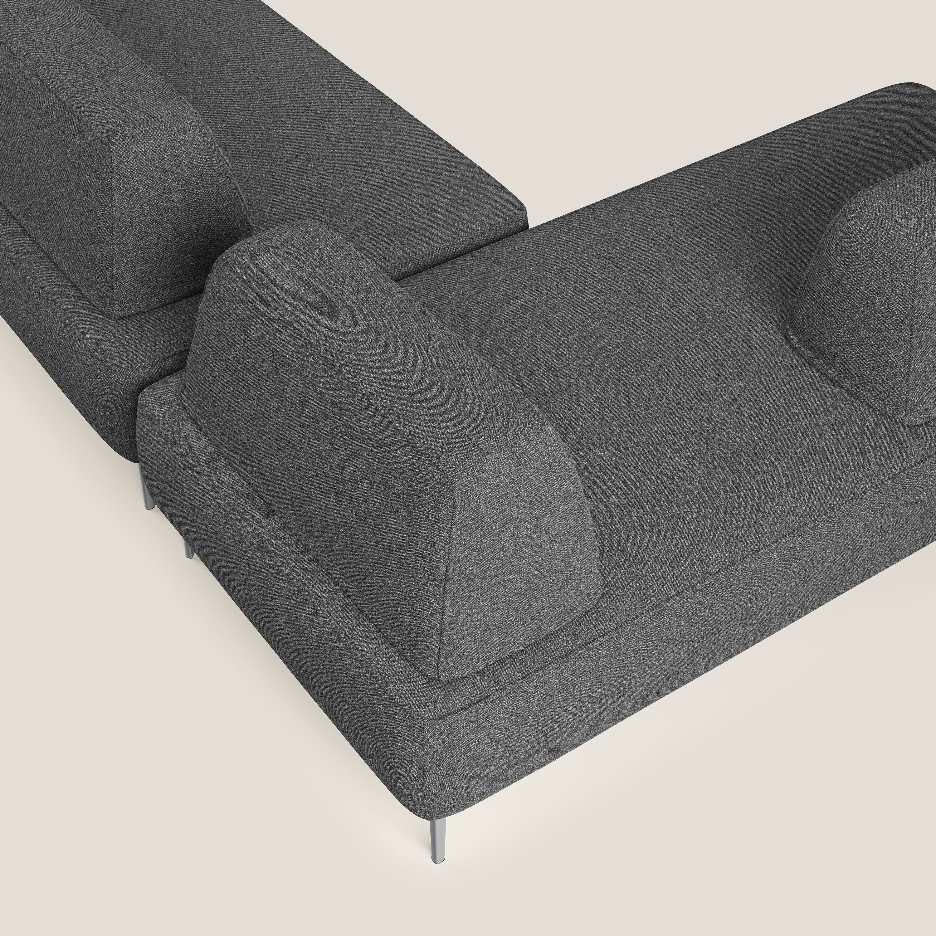 Die Elemente der Rückenlehne sind mit einem Anti-Rutsch-System ausgestattet, um einen besseren Halt am unteren Teil des Sofas zu gewährleisten. All diese Eigenschaften sorgen dafür, dass das Modell nicht nur ein Sofa ist, sondern ein echtes Designobjekt für den Wohnbereich. Die 15 cm hohen Füße aus verchromtem Stahl heben das Sofa vom Boden ab und sorgen für ein leichtes Design.