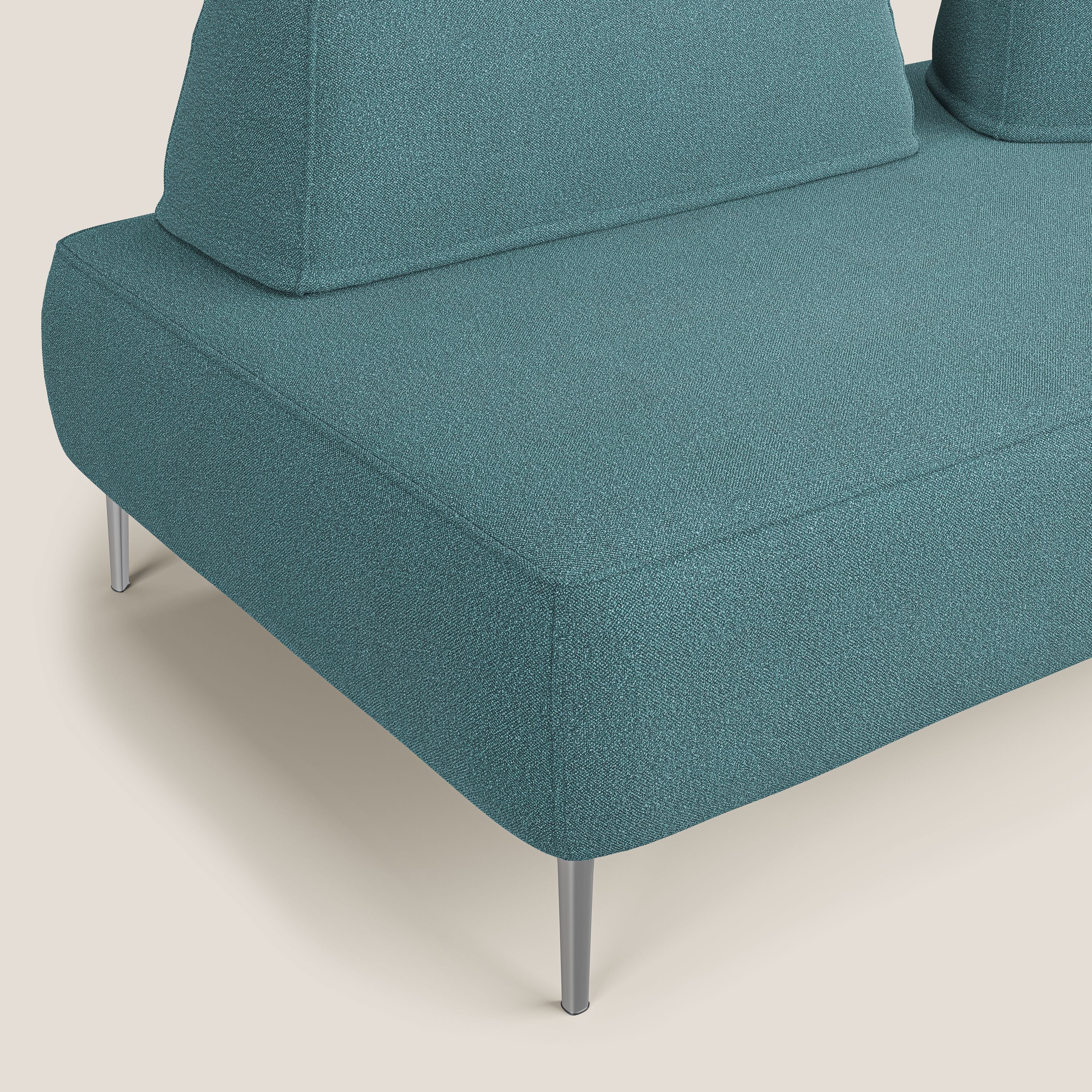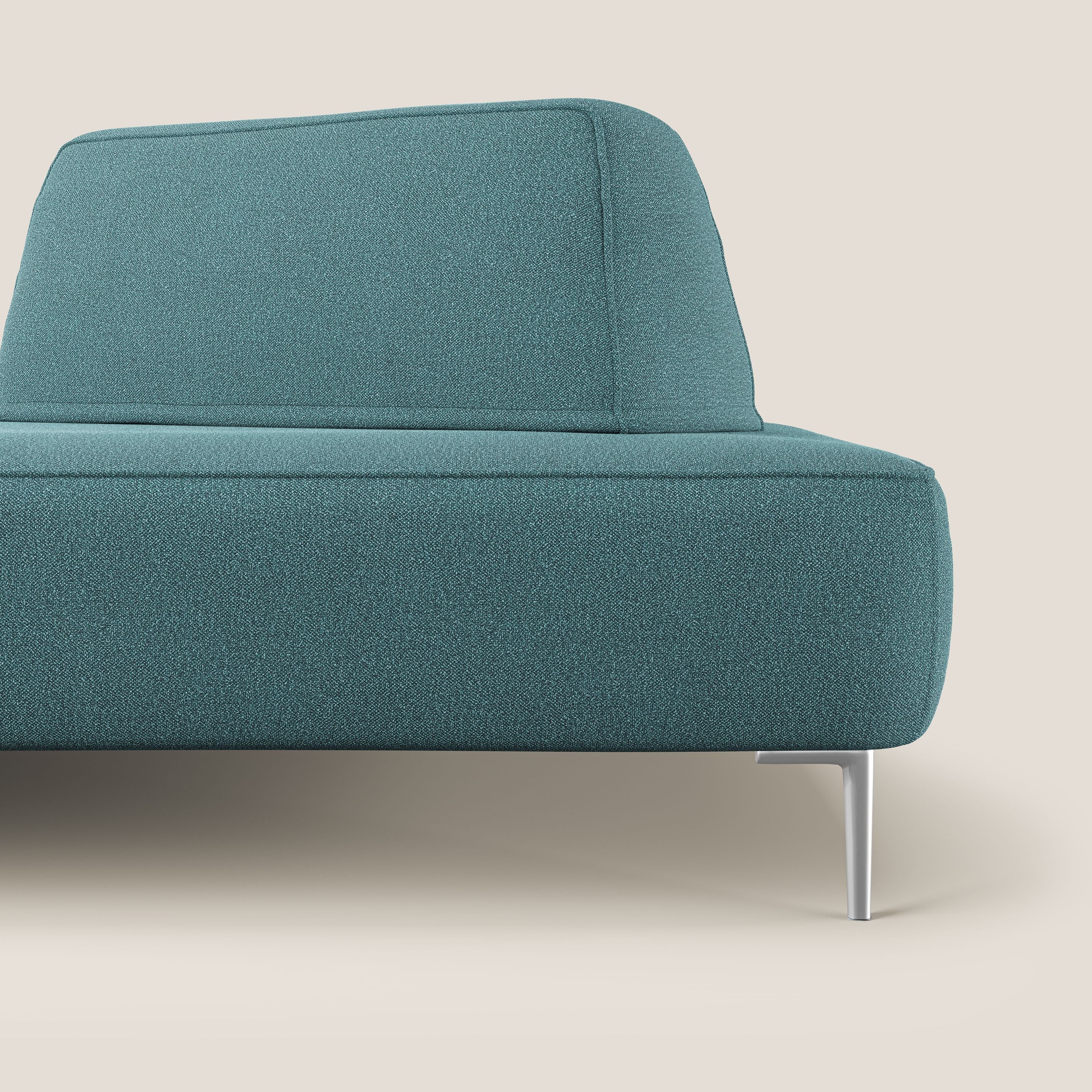 Die Elemente der Rückenlehne sind mit einem Anti-Rutsch-System ausgestattet, um einen besseren Halt am unteren Teil des Sofas zu gewährleisten. All diese Eigenschaften sorgen dafür, dass das Modell nicht nur ein Sofa ist, sondern ein echtes Designobjekt für den Wohnbereich. Die 15 cm hohen Füße aus verchromtem Stahl heben das Sofa vom Boden ab und sorgen für ein leichtes Design.