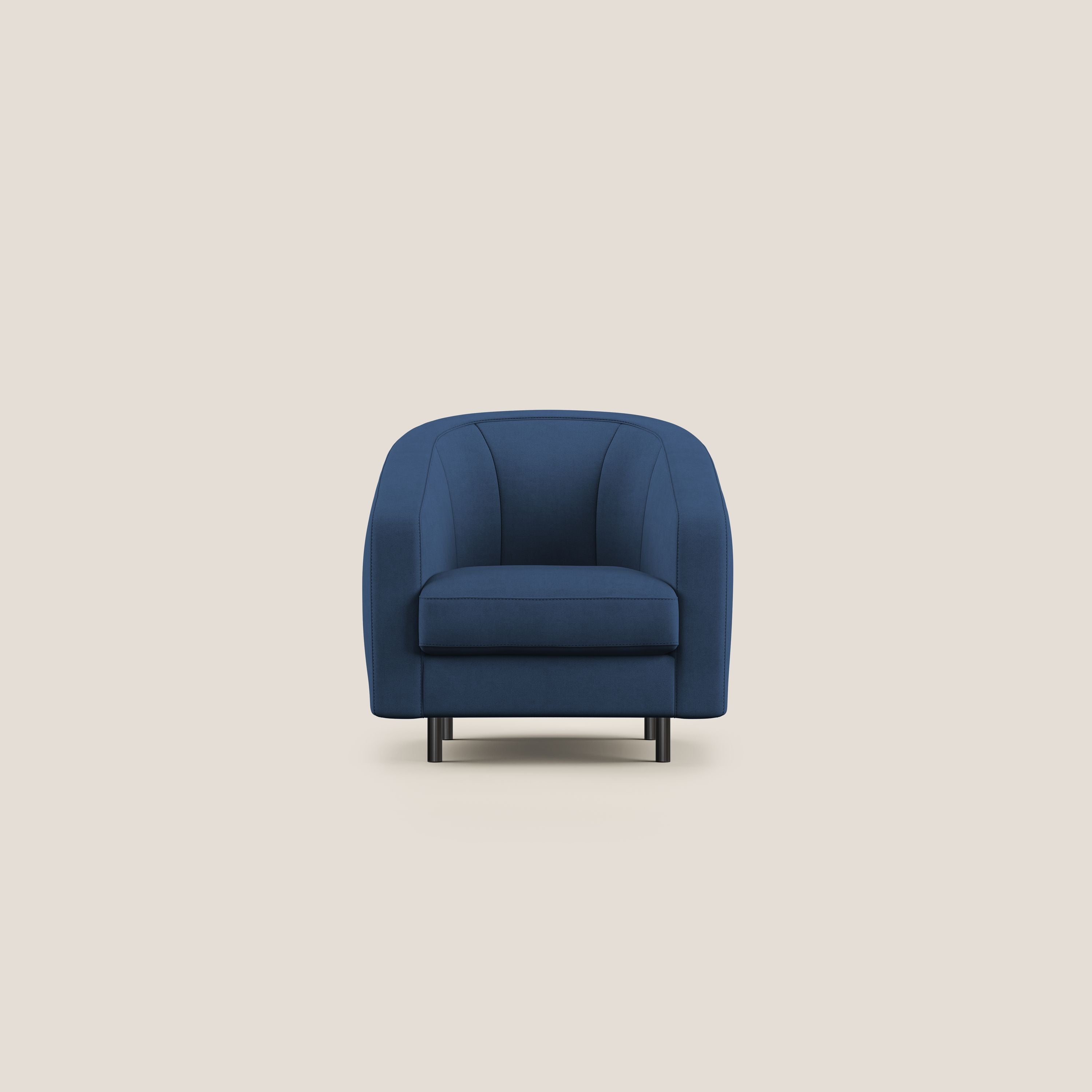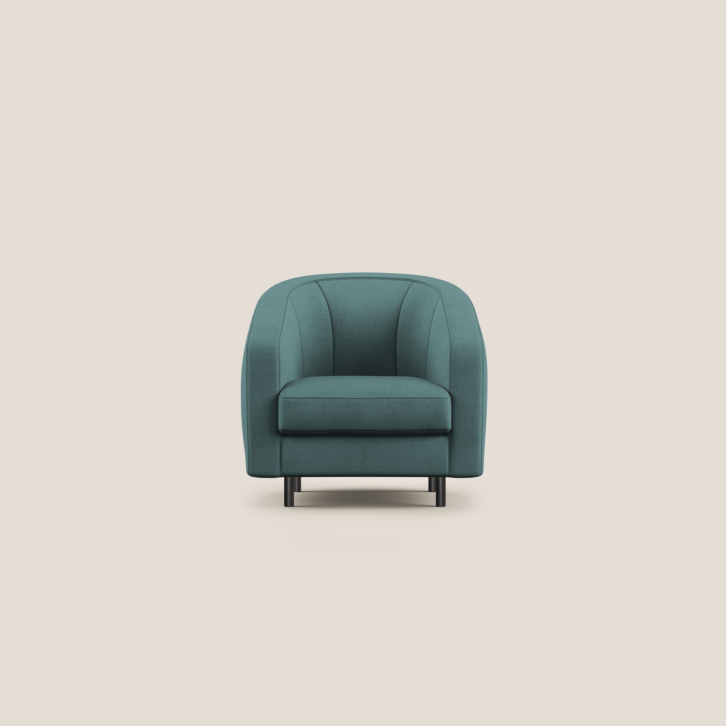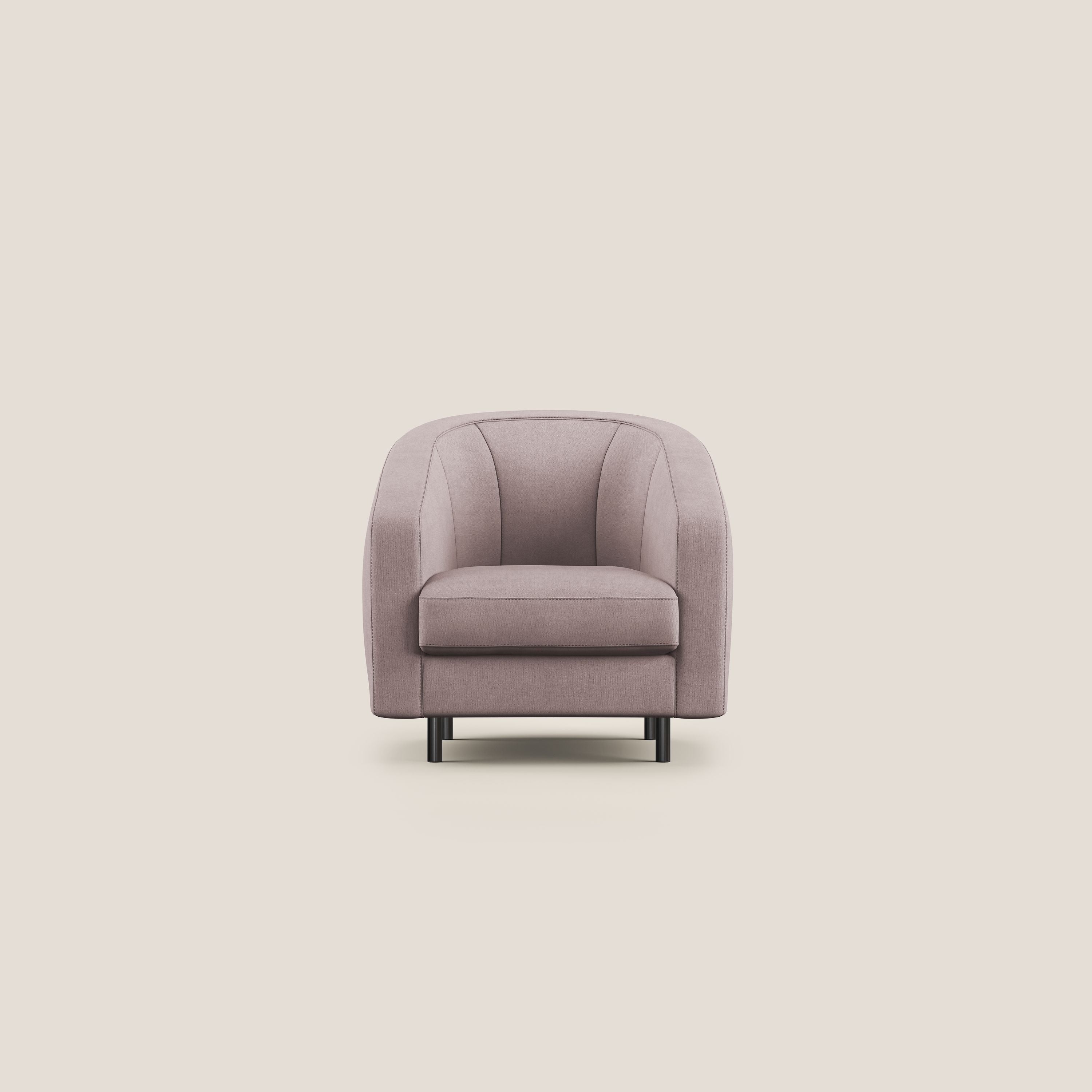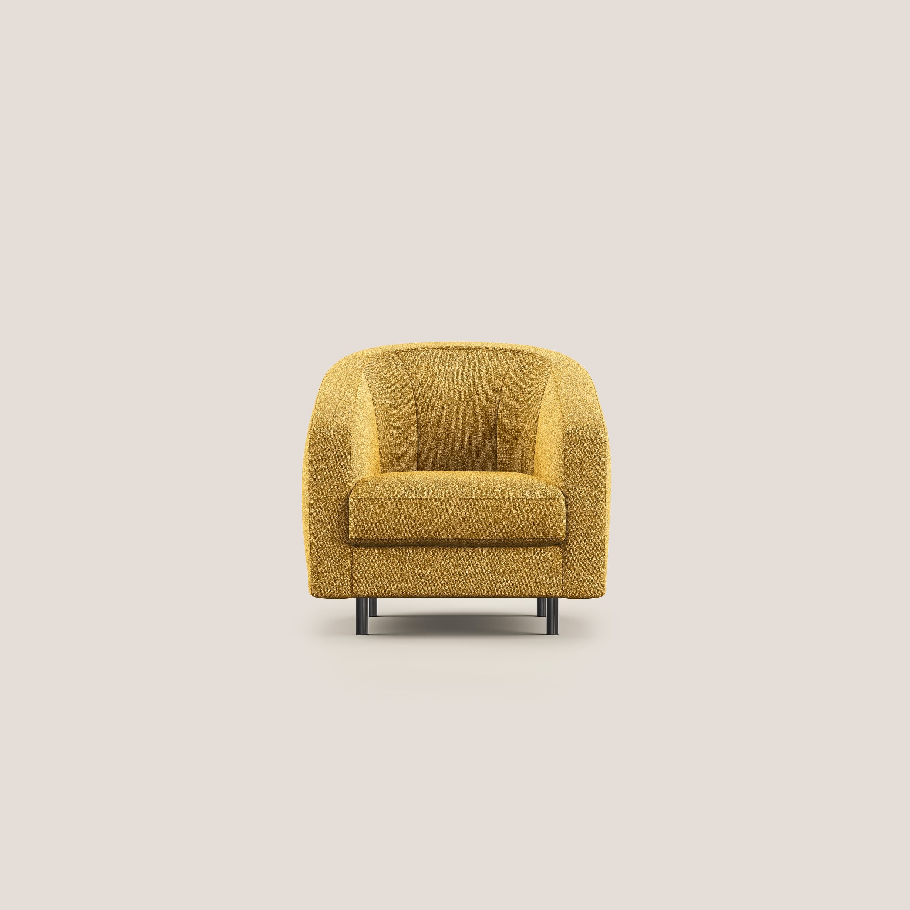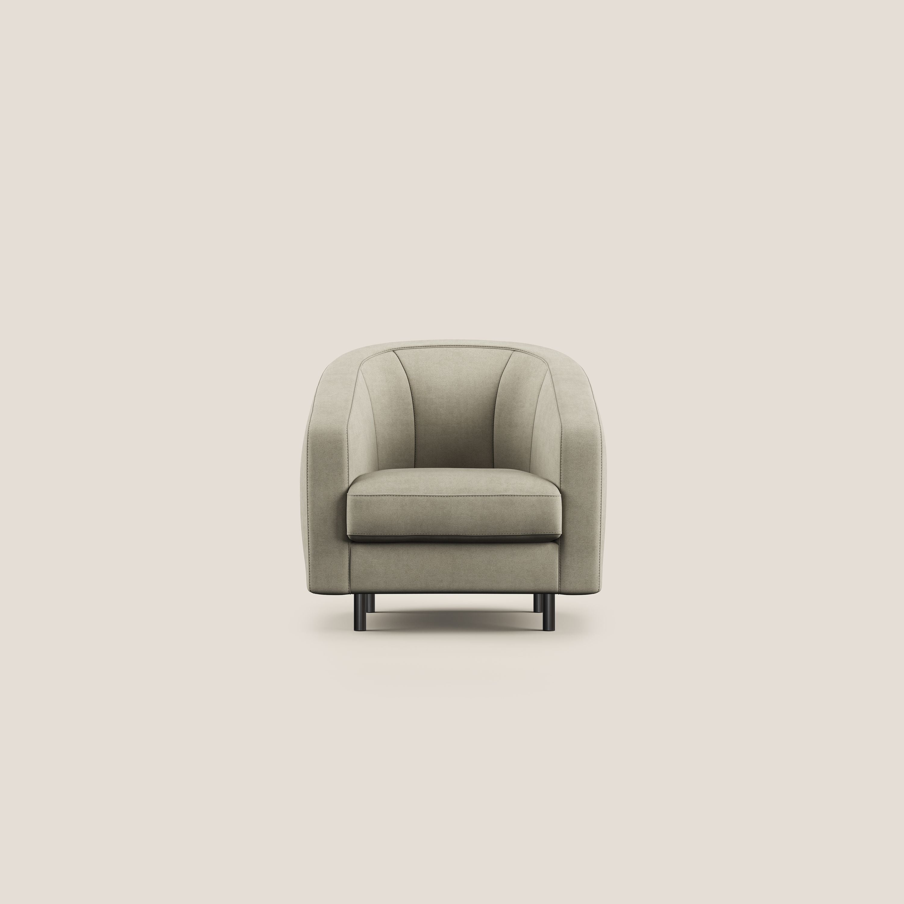 Sessel aus weichem, wasserfestem Stoff, mit 13 cm hohen schwarzen Stahlfüßen.