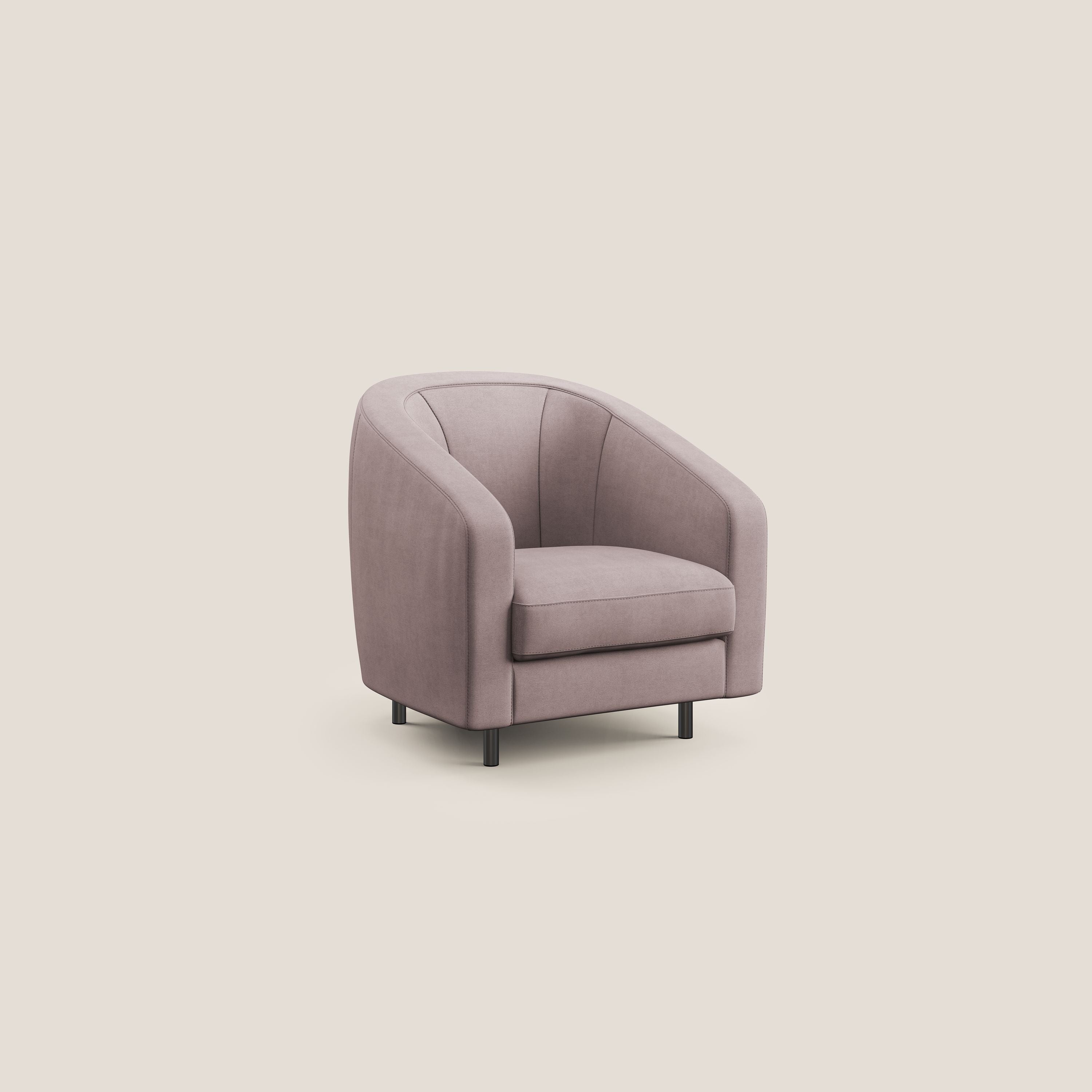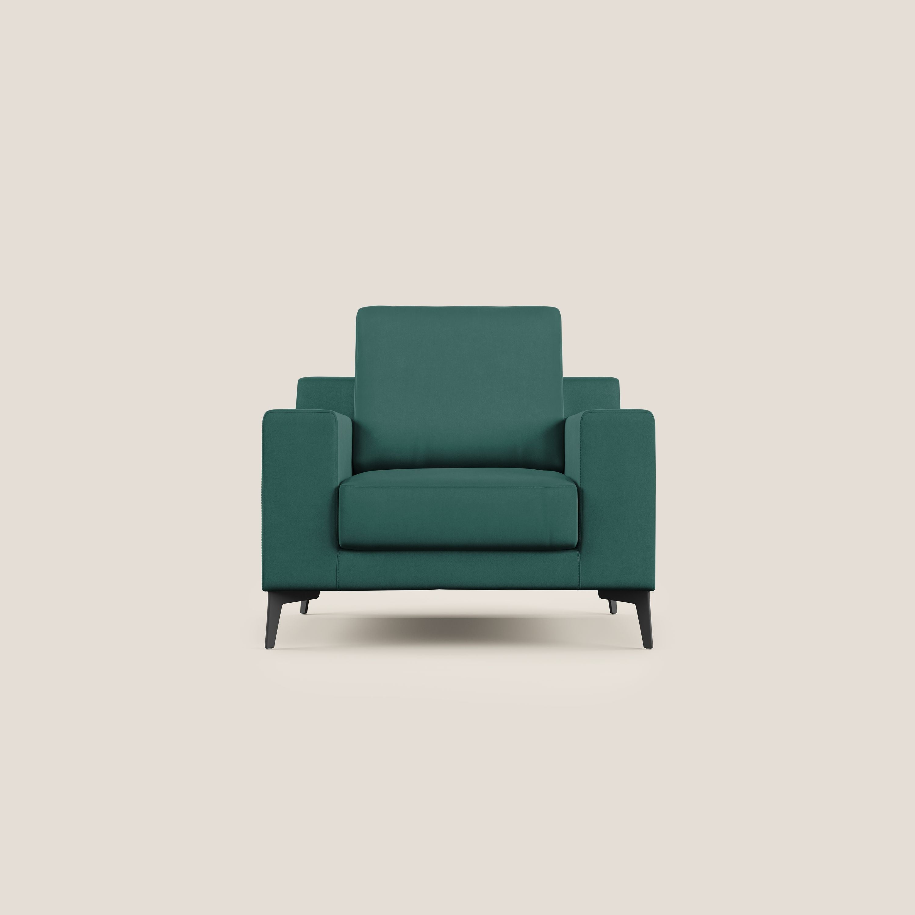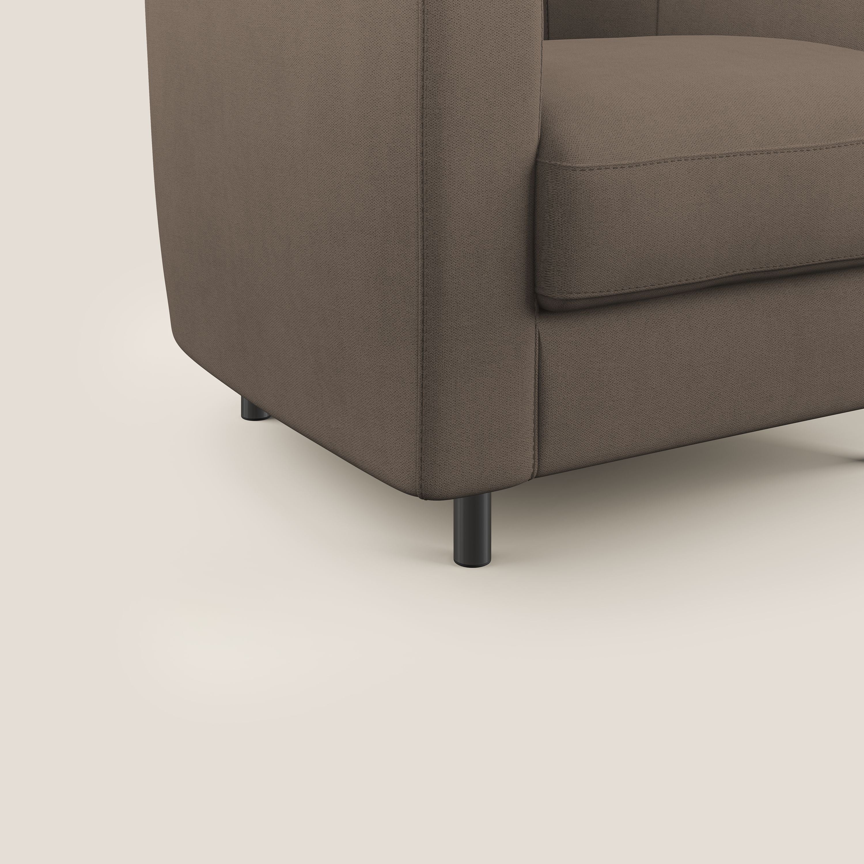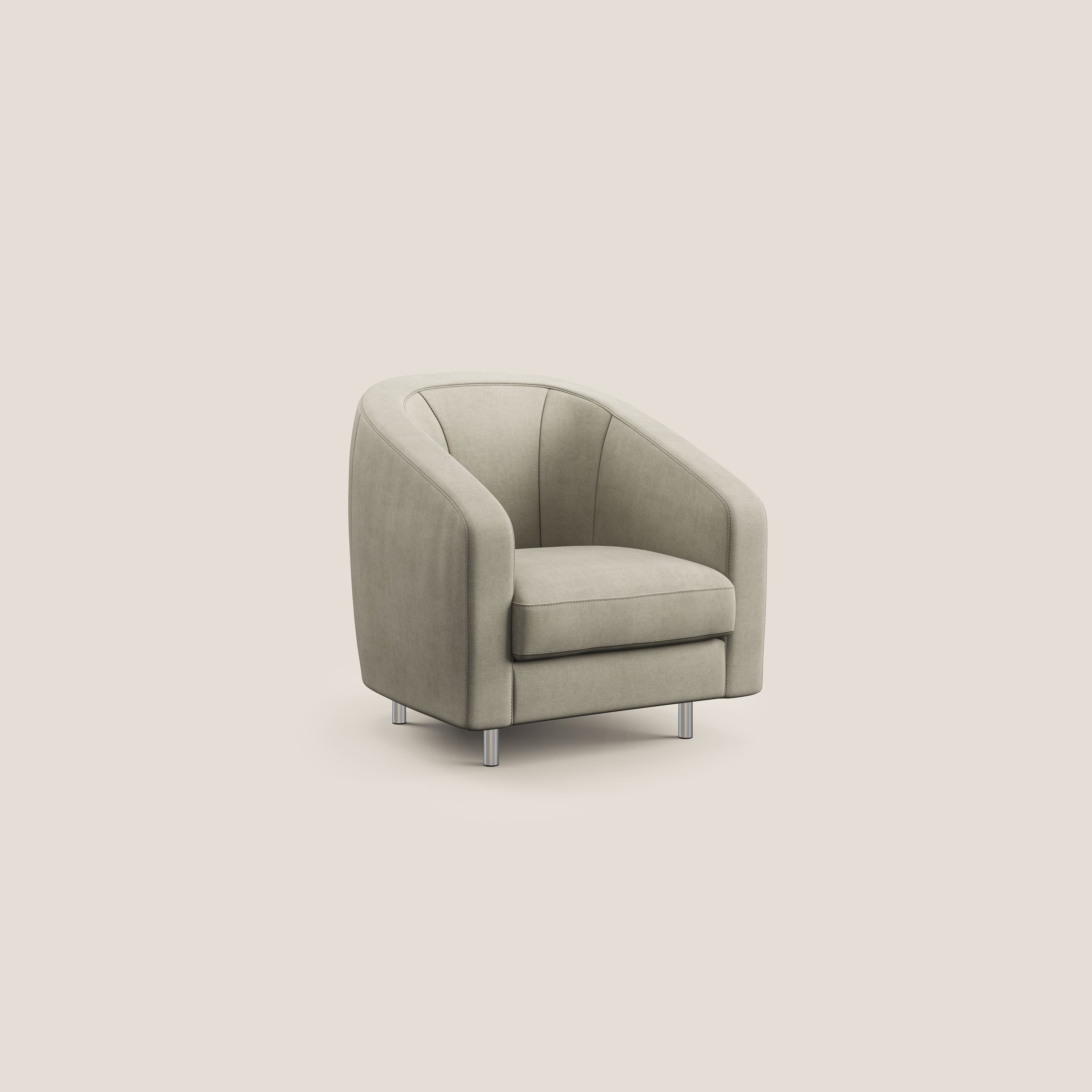 Sessel aus weichem, wasserfestem Stoff, mit 13 cm hohen schwarzen Stahlfüßen.