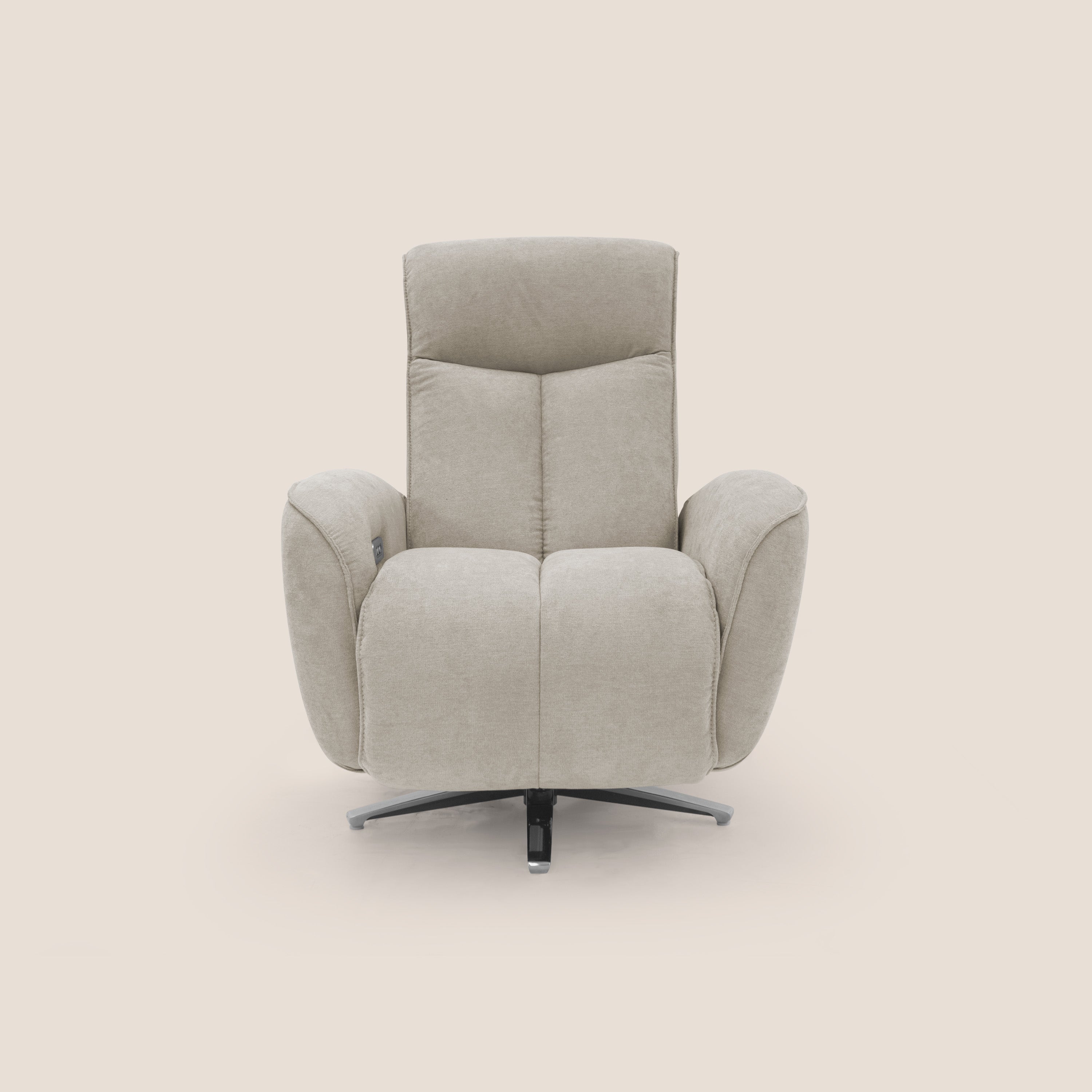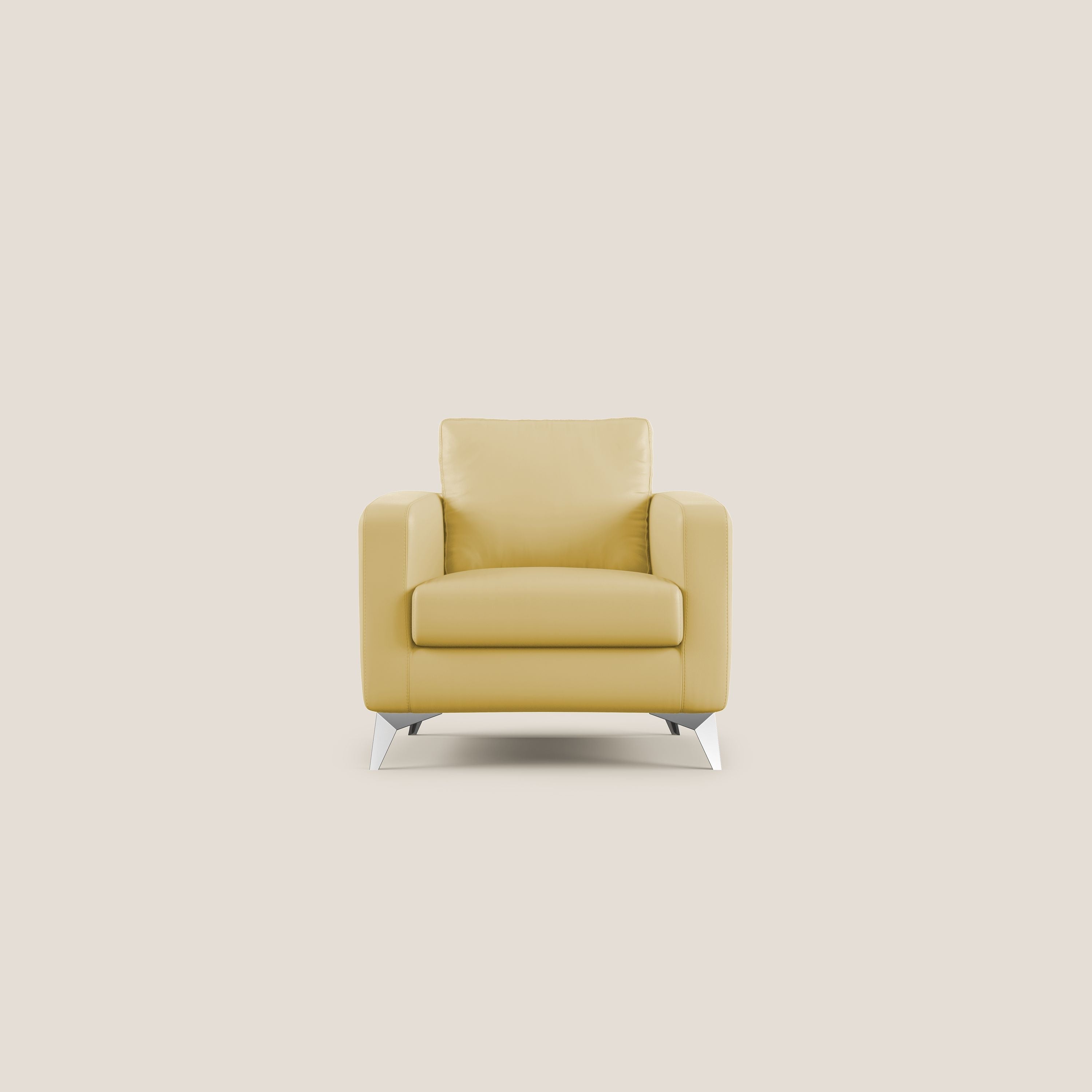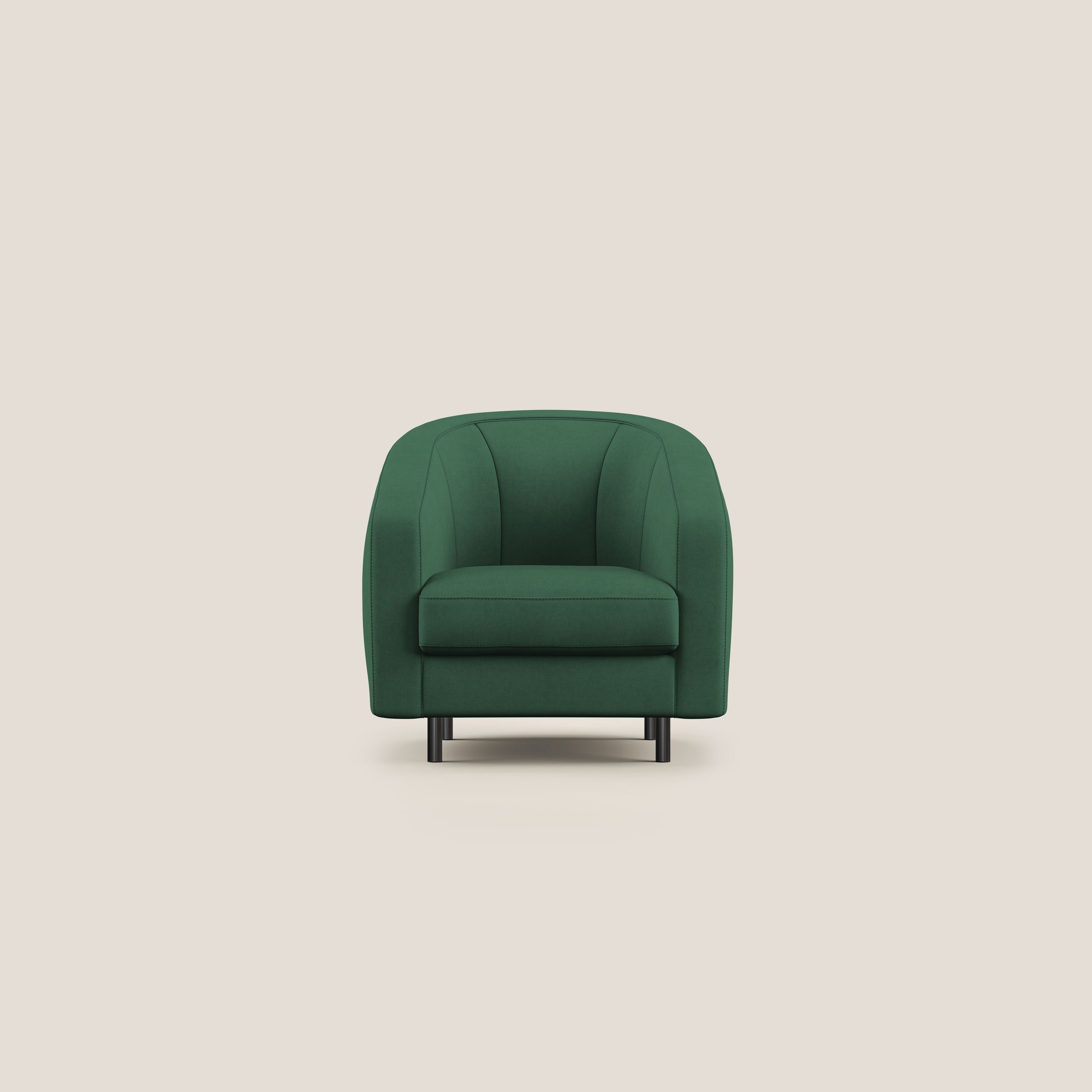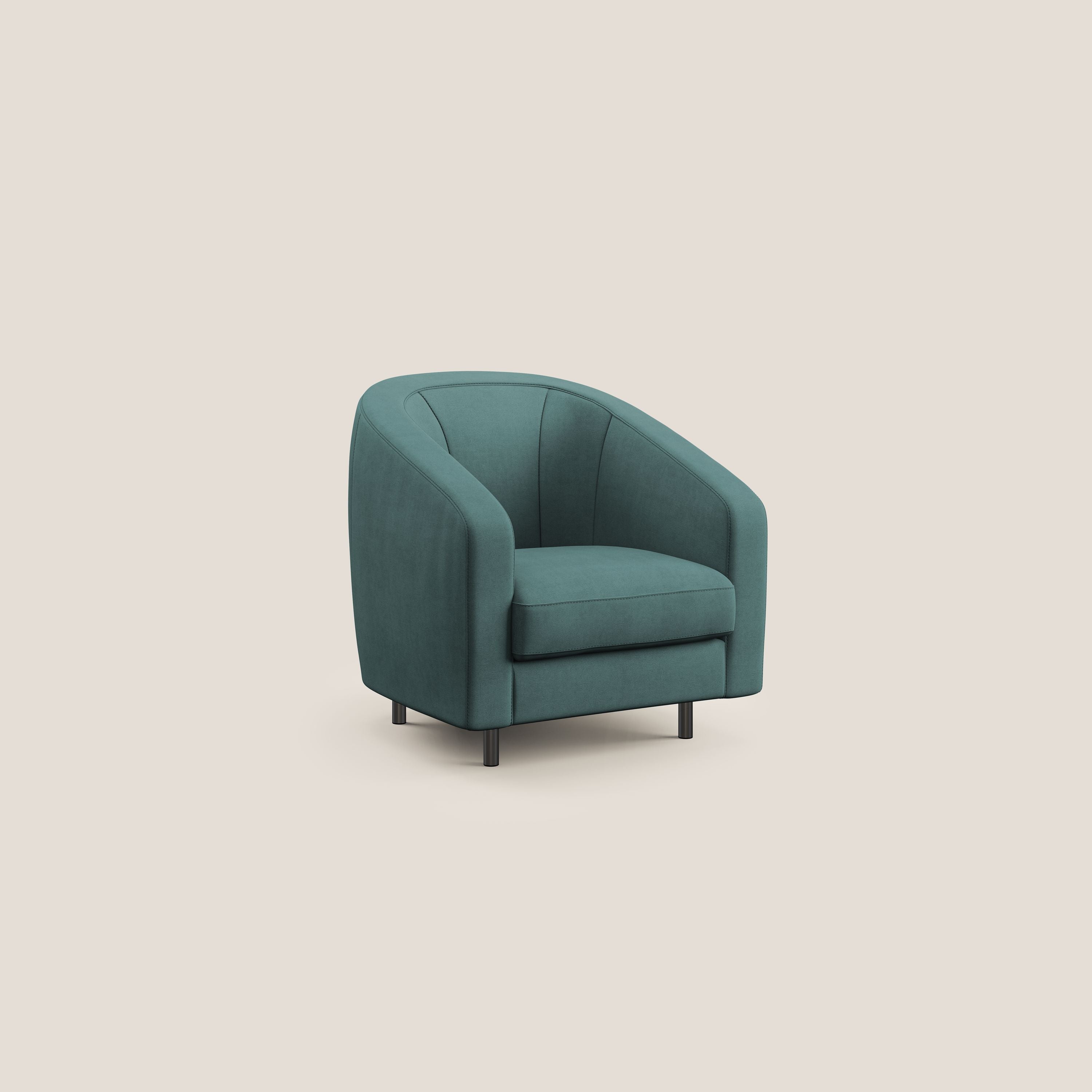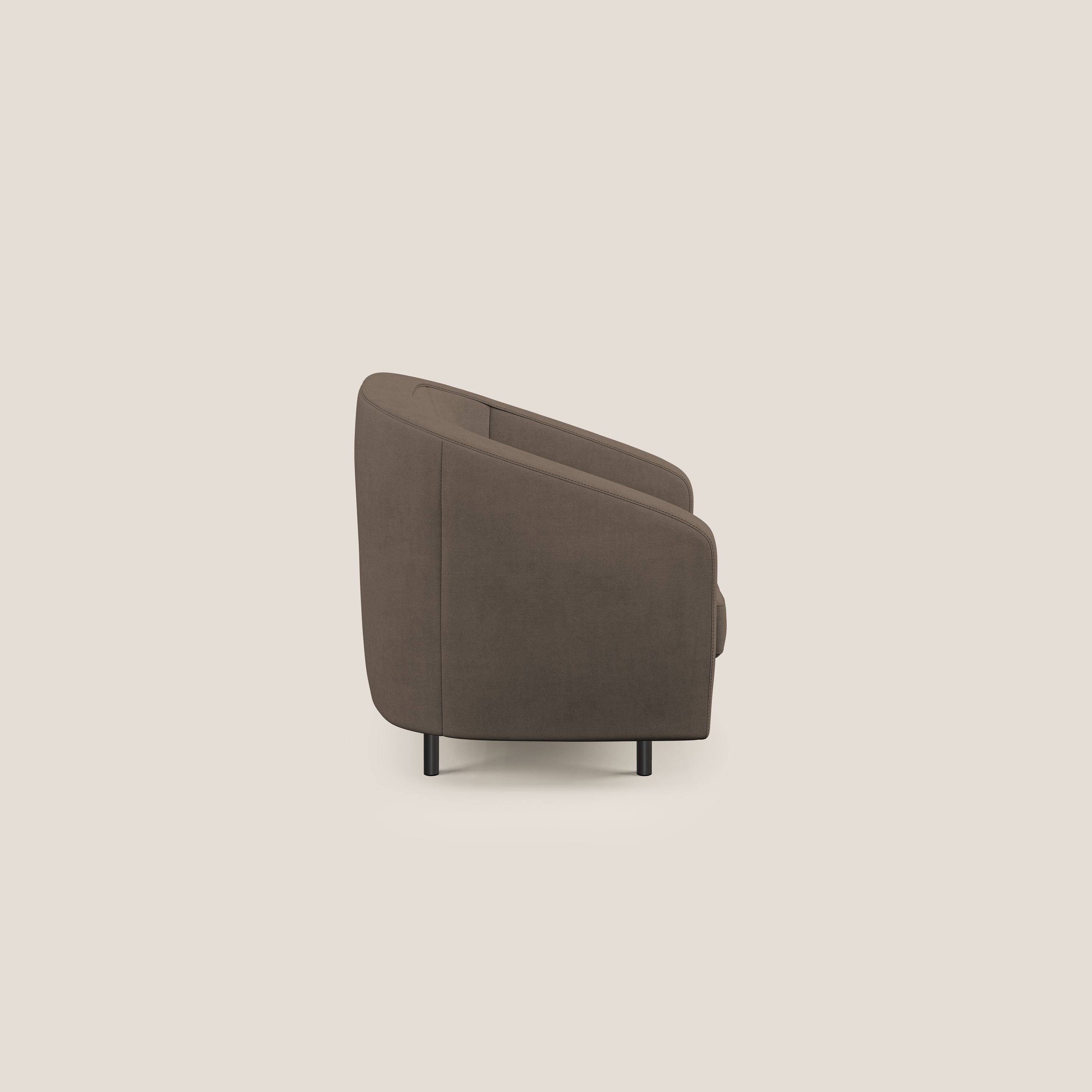 Sessel aus weichem, wasserfestem Stoff, mit 13 cm hohen schwarzen Stahlfüßen.