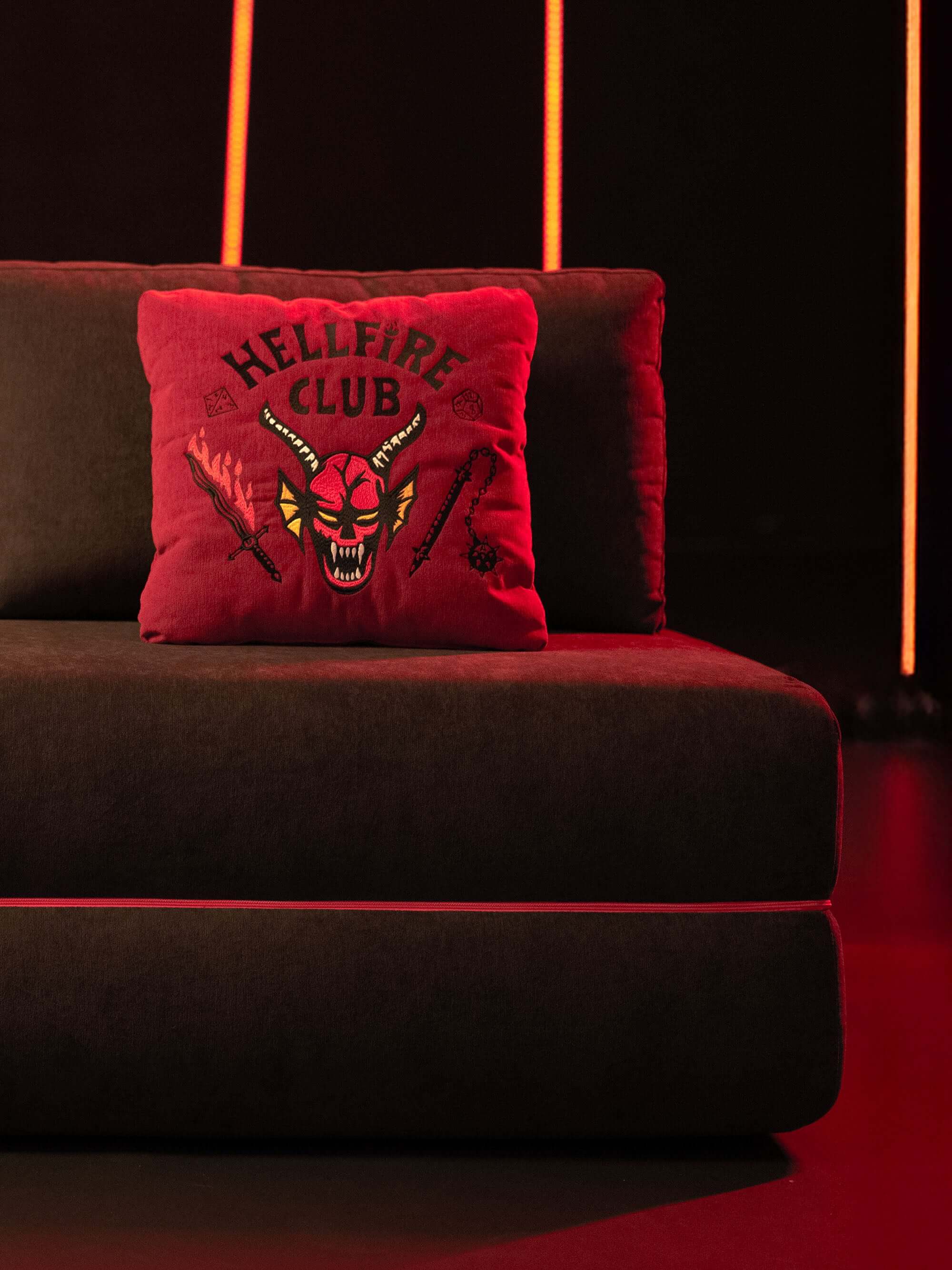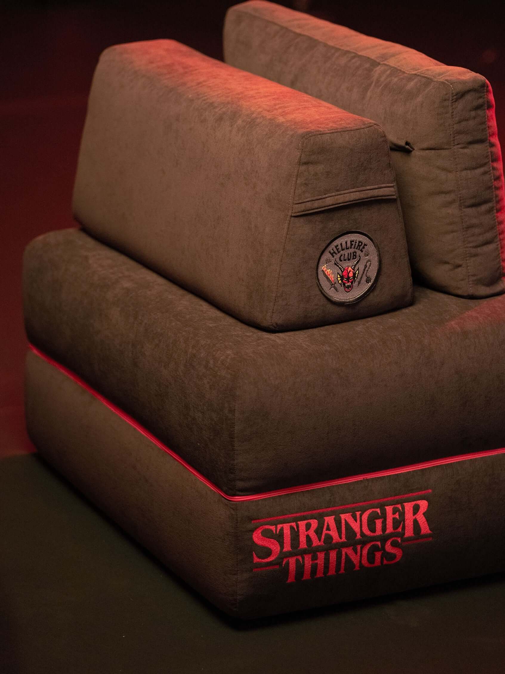 Come ogni pezzo della collezione Stranger Things Edition, anche la poltrona letto è curata nei minimi dettagli: il logo “Stranger Things” ricamato sul frontale, la patch Hellfire Club sul fianco e l’interno trapuntato con stampa a tema evocano le atmosfere della serie, rendendo ogni trasformazione un piccolo viaggio nel Sottosopra.
