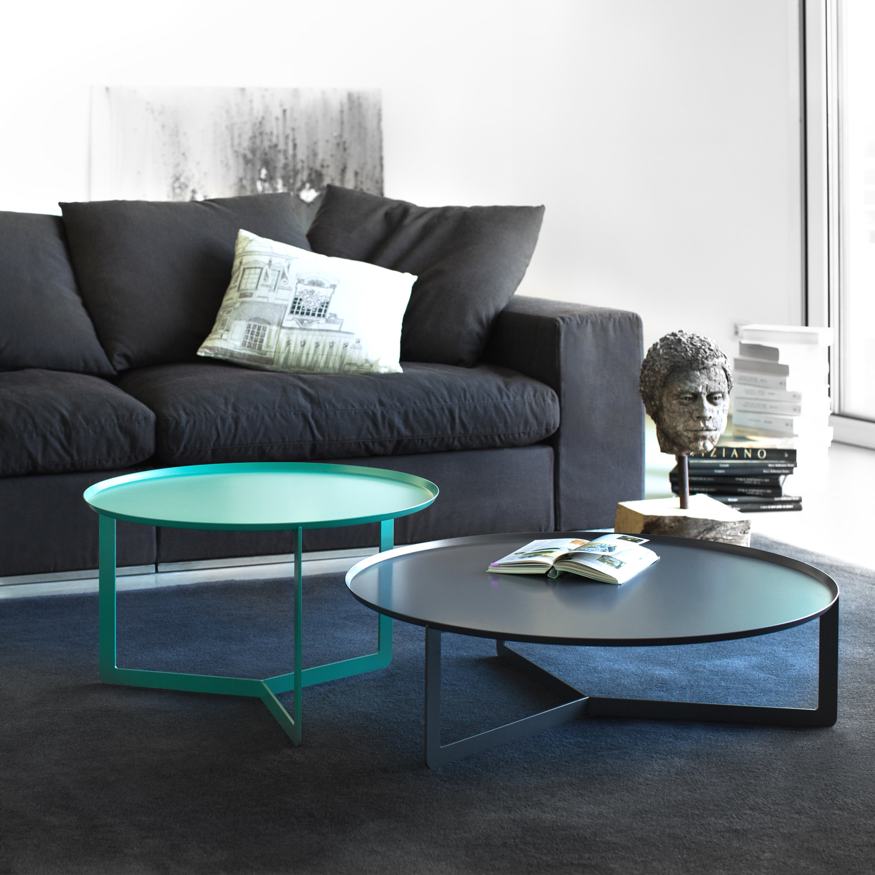 Dieser niedrige, runde Couchtisch aus Metall ist eine tolle Option für jeden Raum. Er ist in drei Größen und 17 verschiedenen RAL-Farben erhältlich. So können Sie den Couchtisch schnell und bequem an Ihre räumlichen Gegebenheiten anpassen. Auf Wunsch erhalten Sie auch die von Ihnen gewünschte Farbe. Dank seines klaren, minimalistischen Designs fügt er sich in Ihre bestehende Einrichtung ein und kann mit seinen Geschwistern kombiniert werden, um eine Kombination von Stilen und Farben für einzigartige, dynamische Umgebungen zu schaffen. Auch in einer Version für den Außenbereich erhältlich.