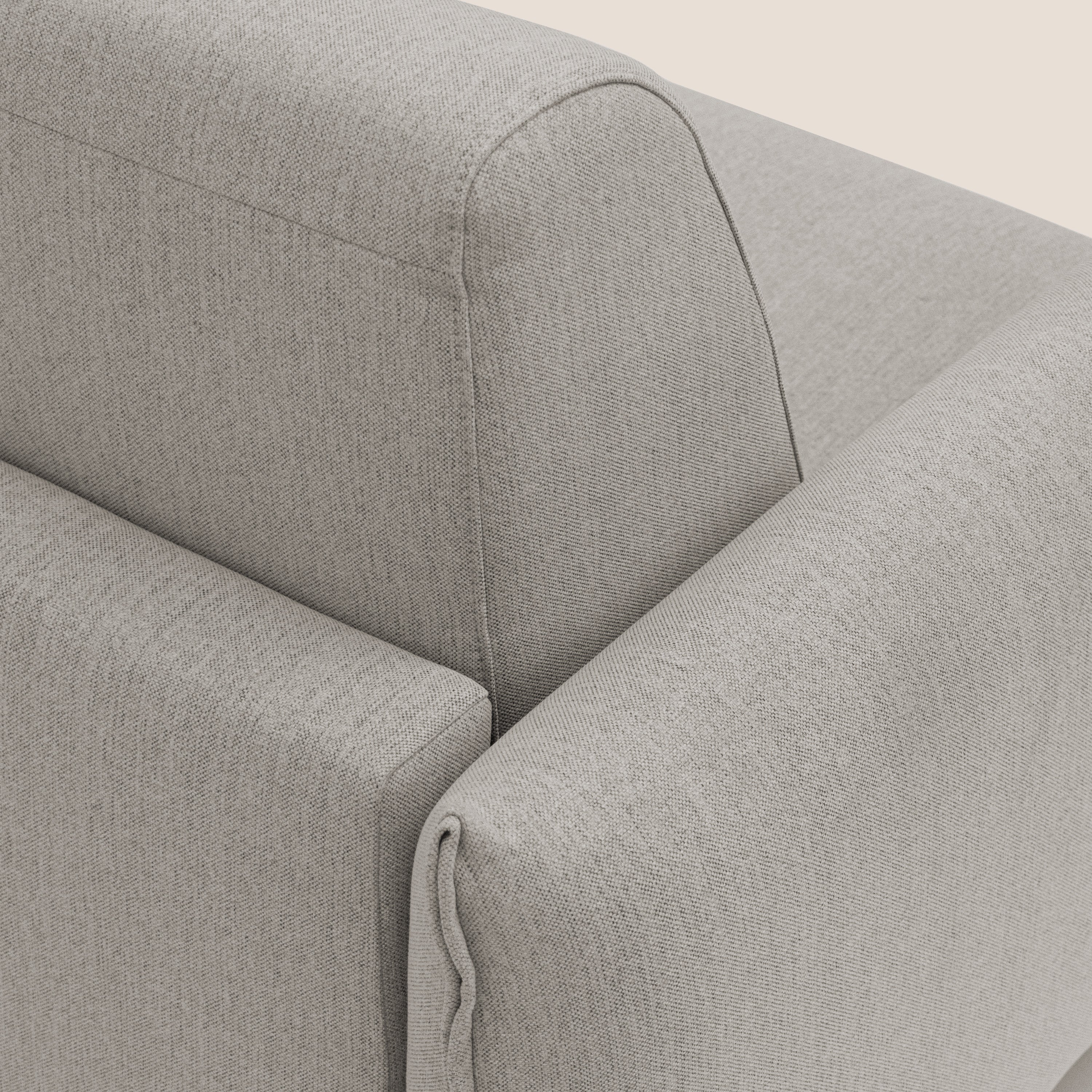 Der Bezug ist komplett abnehmbar und besteht aus einem Baumwollmischgewebe mit Melange-Effekt, das dank seiner Behandlung wasserfest und wasserabweisend ist. Maschinenwaschbar bei 30°, Scarlet ist ein Qualitätssofa! Ausgestattet mit einem Kissenfach in der Rückenlehne, bieten die 13 cm hohen schwarzen Stahlfüße und die weichen, stabförmigen Armlehnen des Sofas für ein modernes Design mit optimalen Proportionen eine Kombination aus Leichtigkeit und Eleganz.