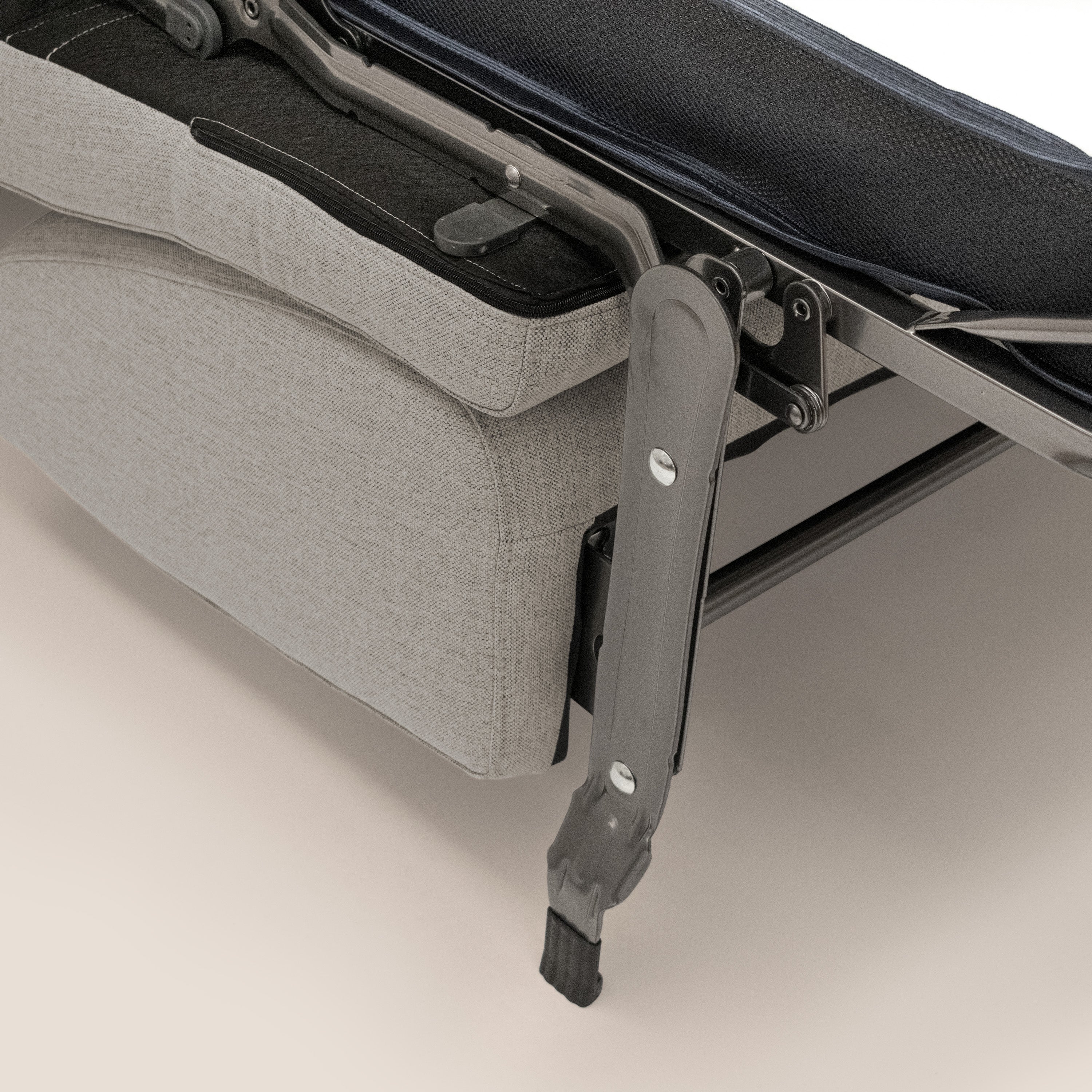 Mechanismus: Innovatives Klappensystem, das mit einer einfachen Bewegung das Öffnen des Mechanismus ermöglicht, ohne die Kissen von Sitz und Rückenlehne zu entfernen. Das Gestell ist aus hochfestem Möbelrohr mit Epoxy-Lackierung gefertigt, um zu verhindern, dass Teile korrodieren oder durch aggressive Mittel beschädigt werden