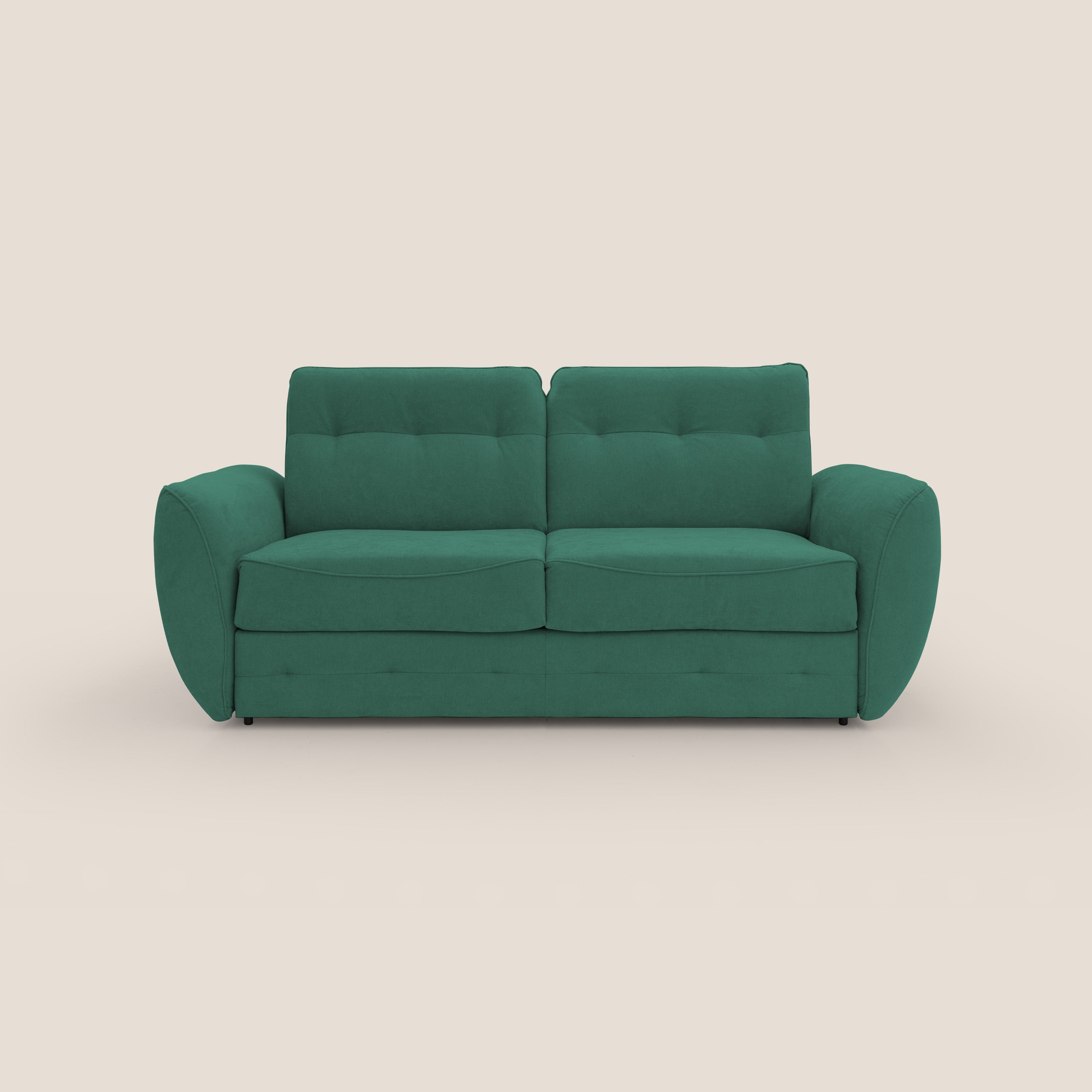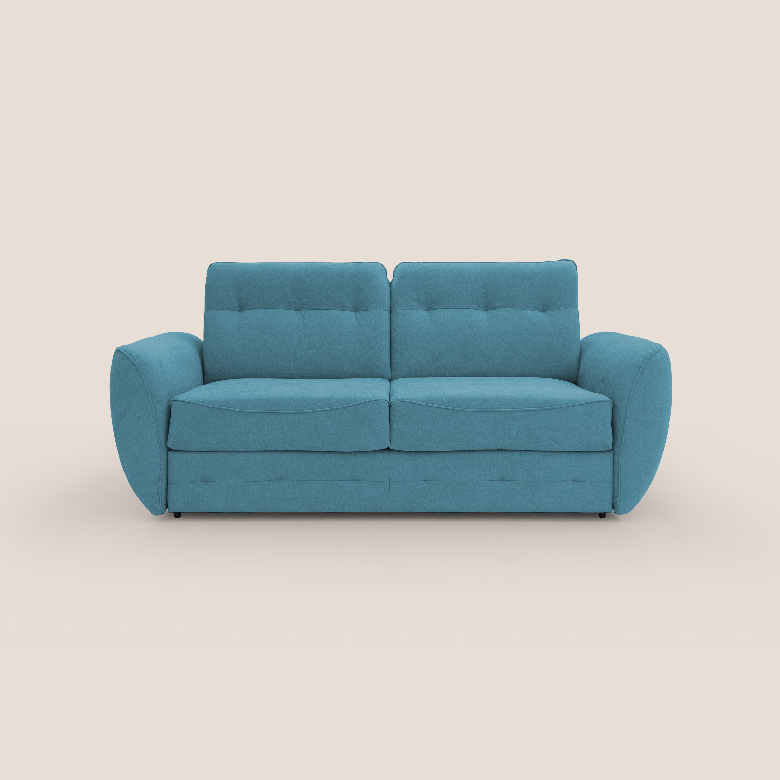 Das Schlafsofa Zeus ist komplett in Handarbeit gefertigt, was die Qualität des 100%igen Made in Italy unterstreicht. Erhältlich in einer 3-Sitzer-Version mit französischer Doppelmatratze (140 cm) und einer 3-Sitzer-Maxi-Version mit Standard-Doppelmatratze (160 cm), aus weichem, wasserfestem Stoff mit wasserabweisender Behandlung für einfache Reinigung.